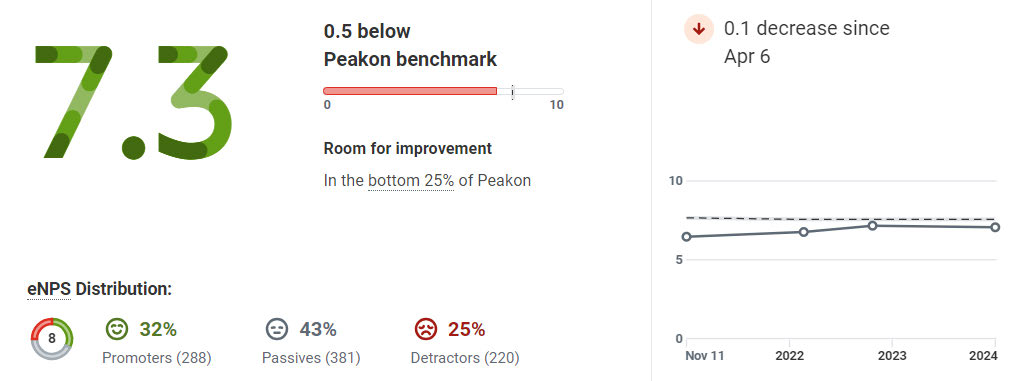 o Overall results - including the high response rate (80%) and decline in overall engagement (-0.9 since 2023).