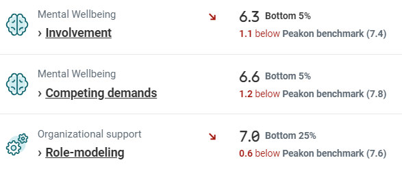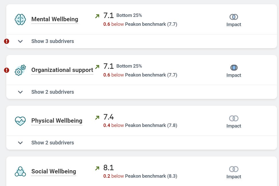 Mental Wel being (+0.2), Organisational Support (+0.3), Physical