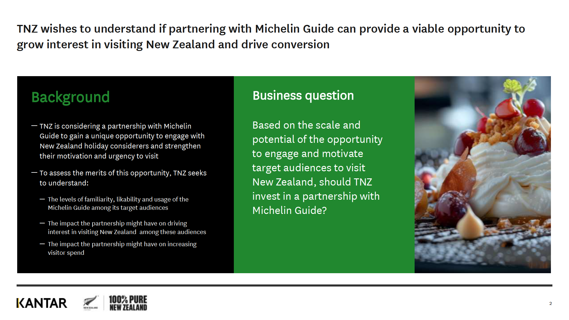 TNZ using historical campaign performance data, and Michelin Guide-specic market research.