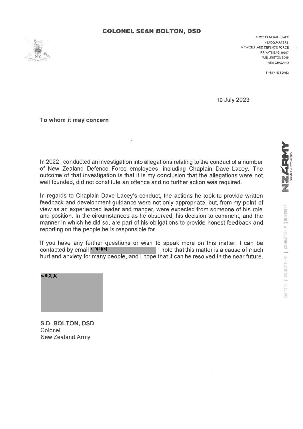 Review of NZDF Chaplaincy Orders, Policy and Culture, and a missing investigation