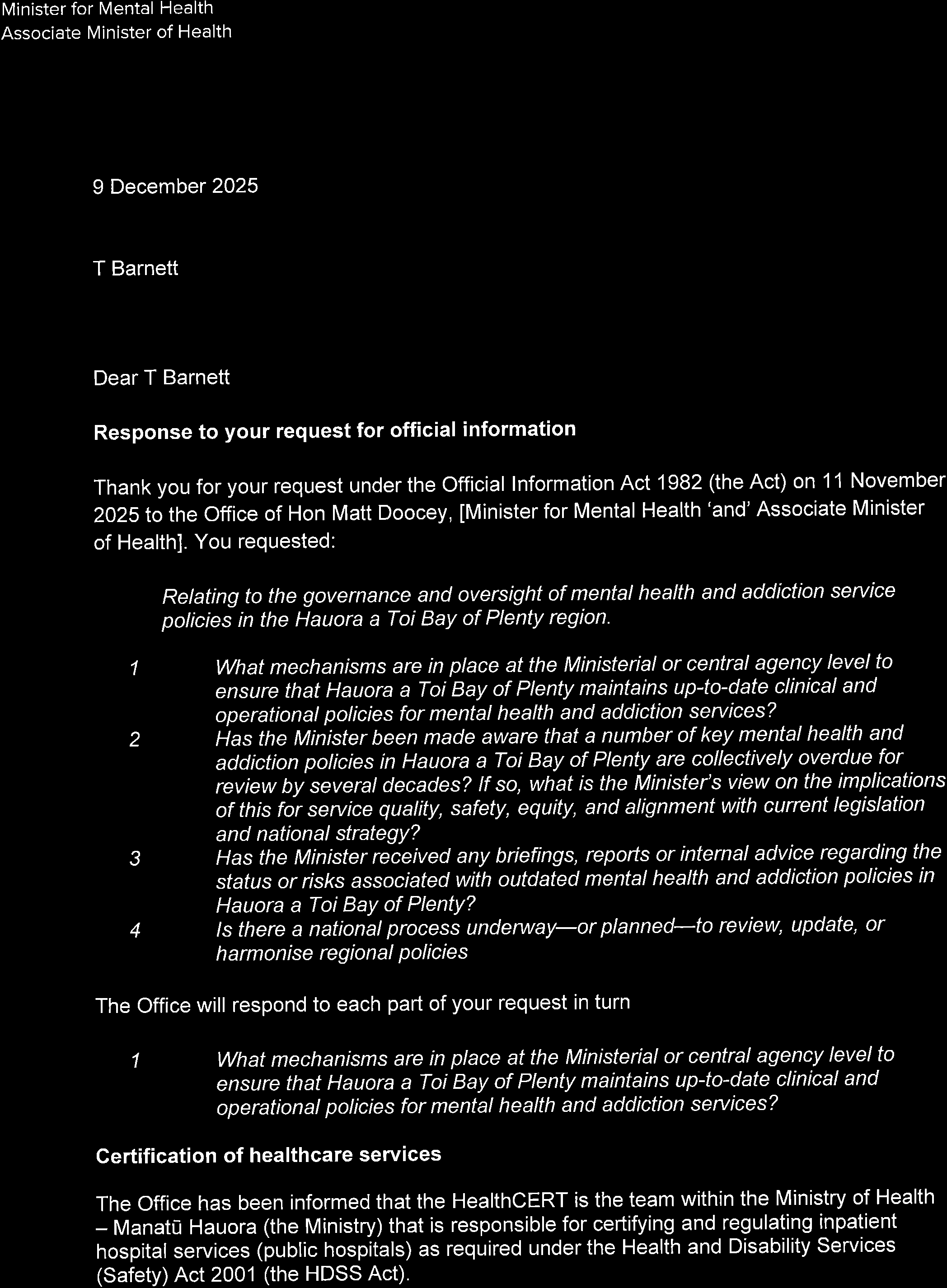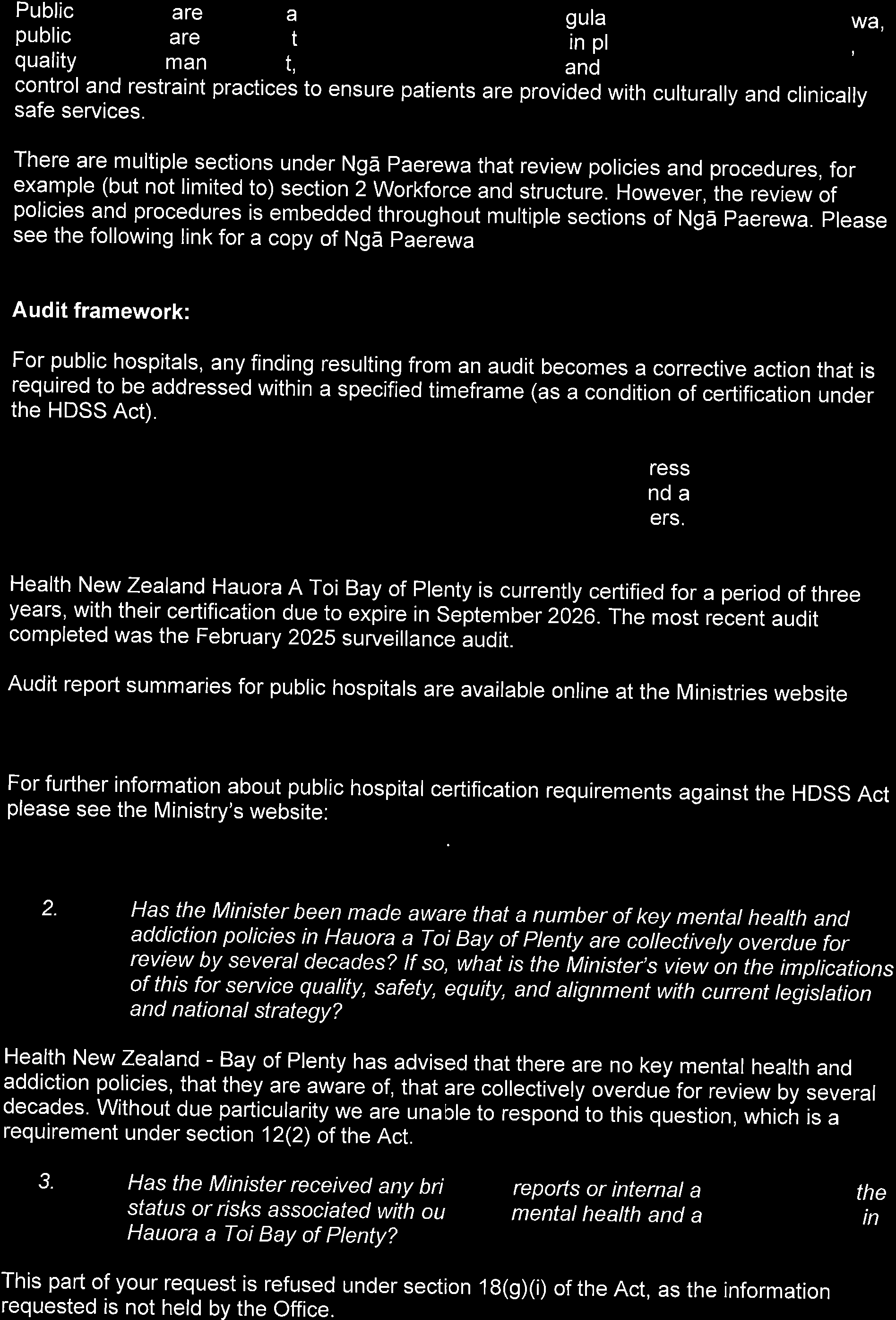 Oversight of Outdated Mental Health and Addiction Policies in Hauora a Toi Bay of Plenty