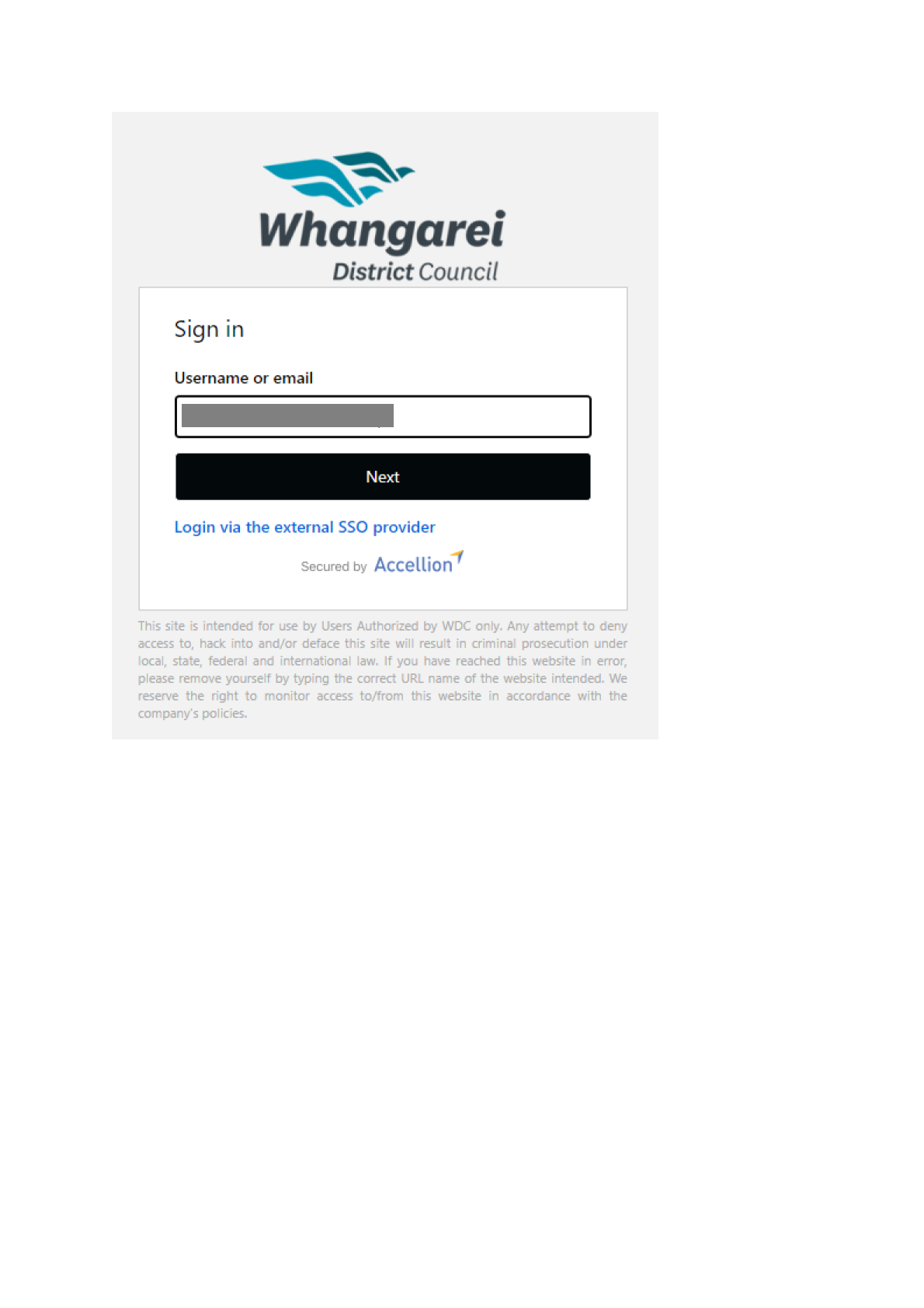 Note: Login via the external SSO provider option is only for WDC staff.