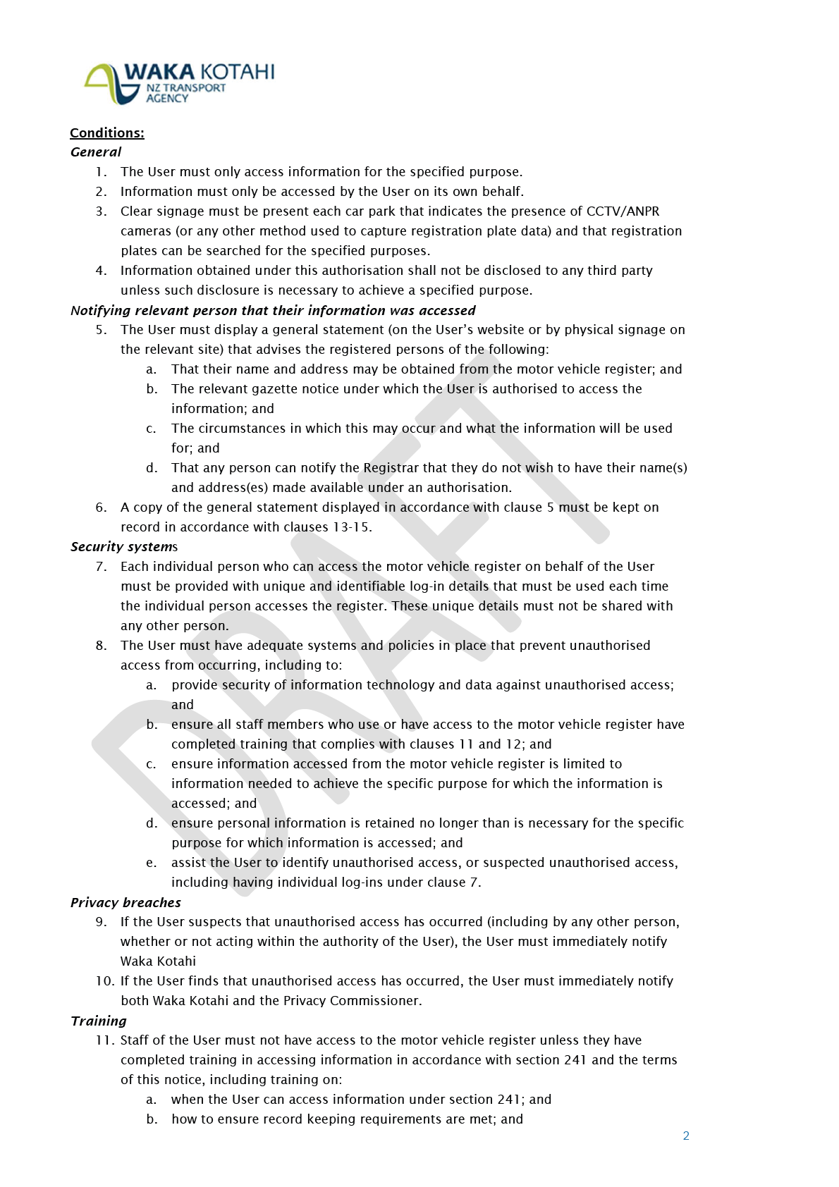 11. Staff of the User must not have access to the motor vehicle register unless they have