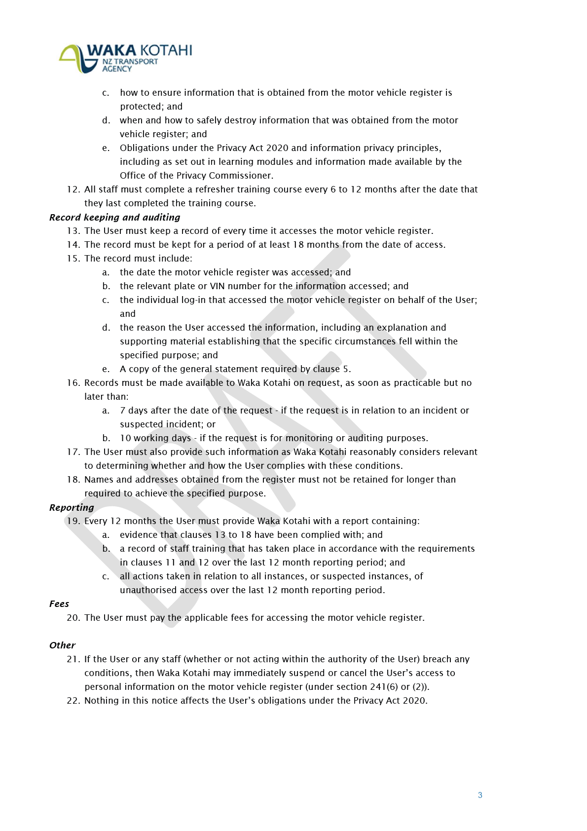 19. Every 12 months the User must provide Waka Kotahi with a report containing: