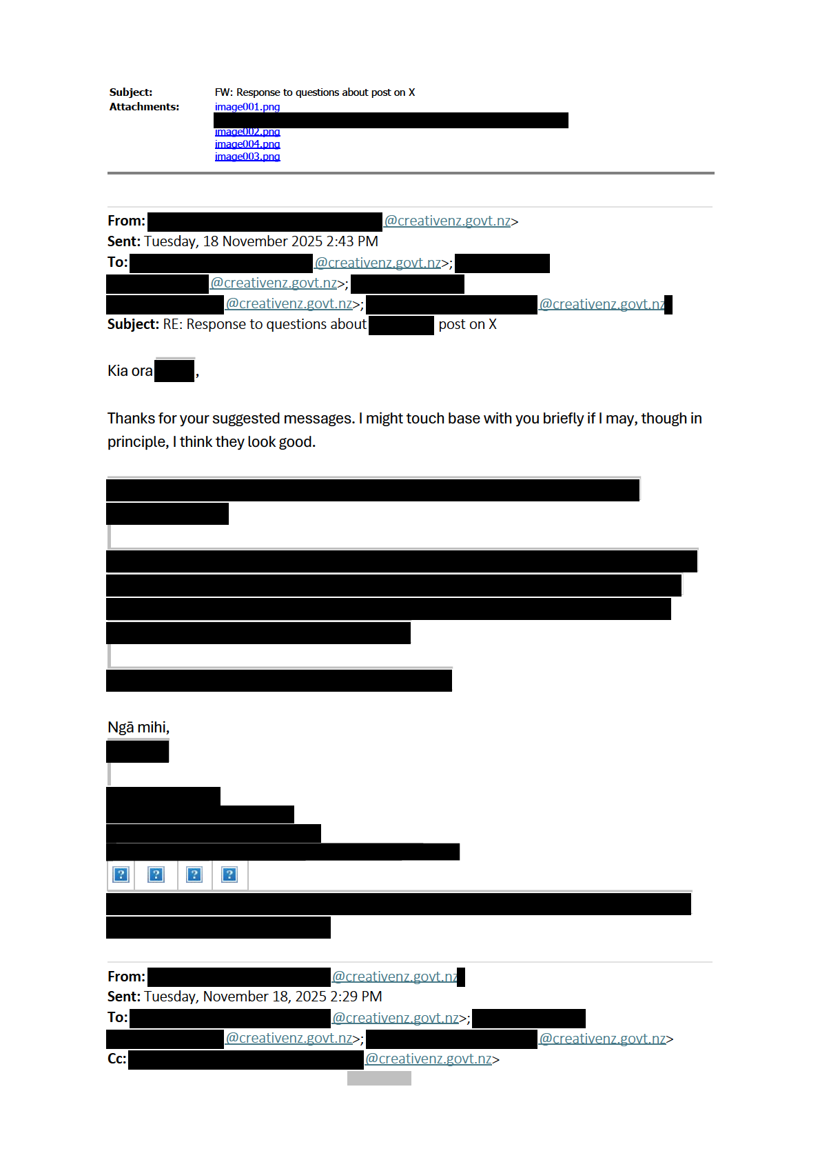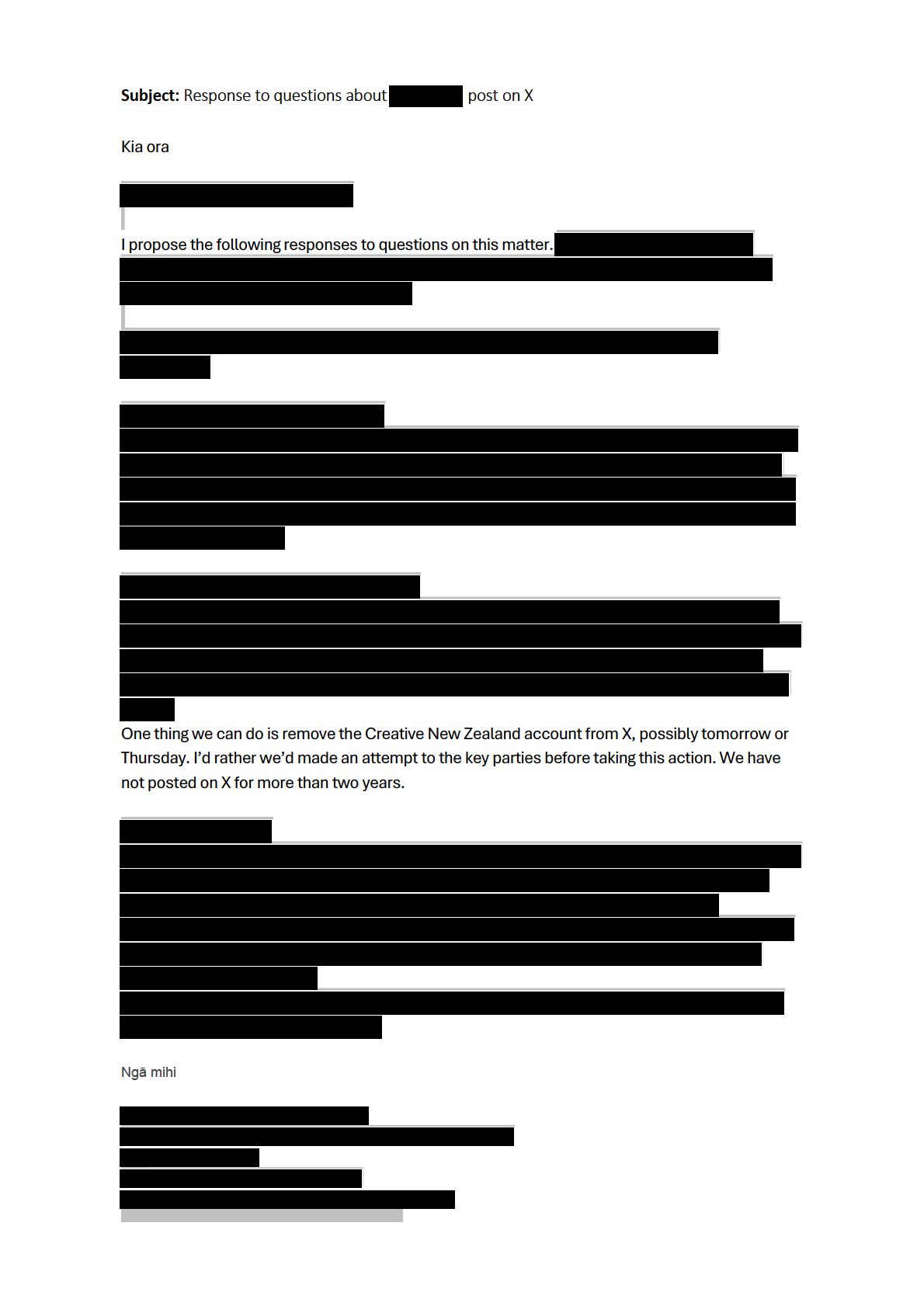 The Creative New Zealand X account was deleted on 19 November 2025. Creative New Zealand