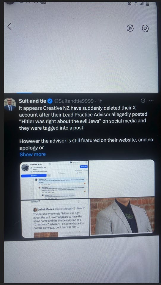 media post made by a Creative New Zealand staff member (acting in his personal capacity):