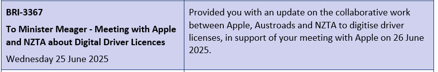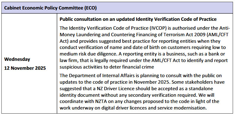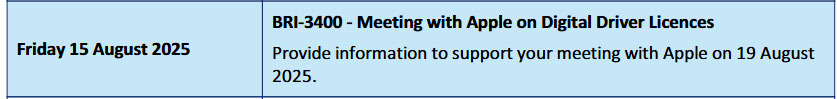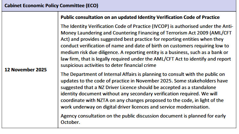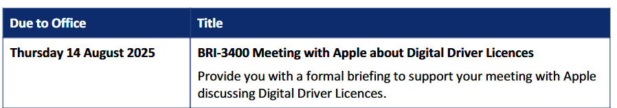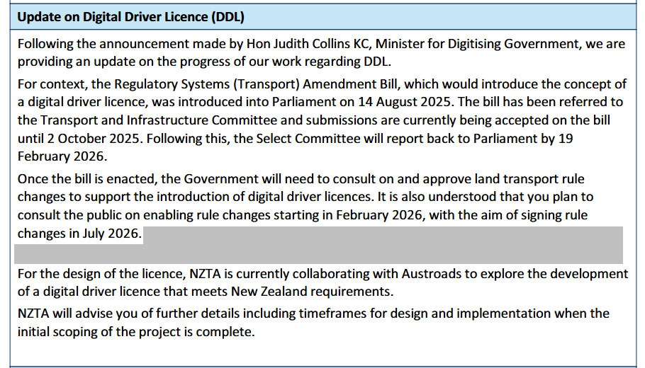 Cabinet approvals and opportunities for us to engage through the development of any digital driver licence,