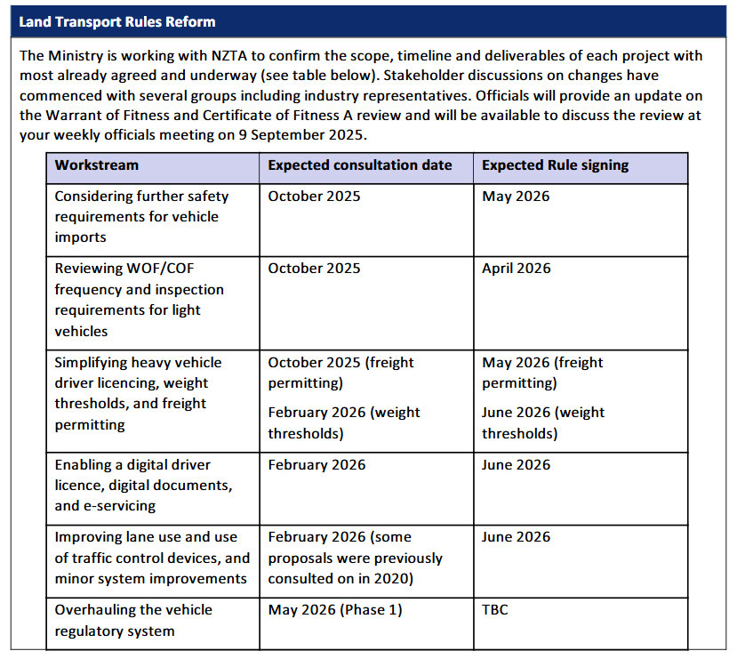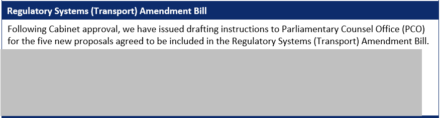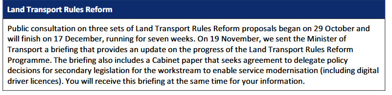 “Regulatory Systems (Transport) Amendment Bil ” and “Land Transport Rules Reform Programme”