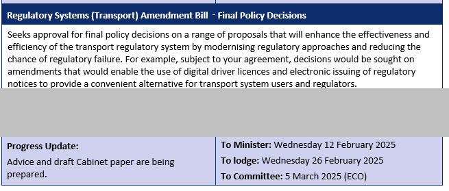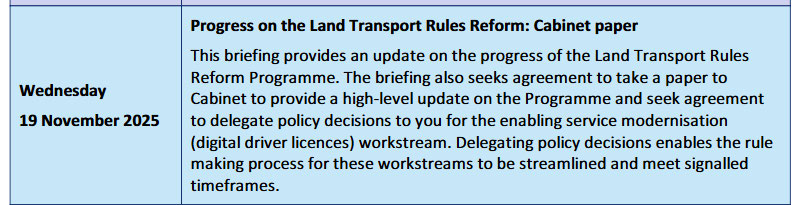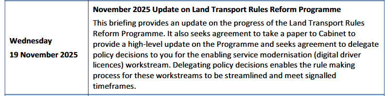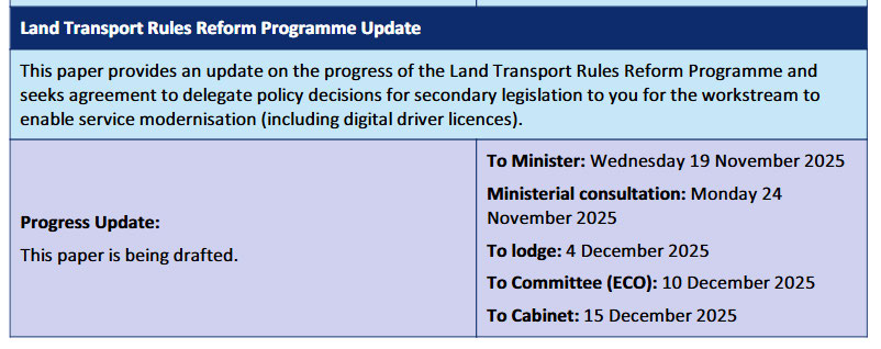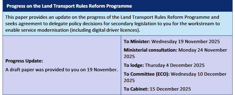 The Cabinet paper mentioned in document #1 titled “Progress on the Land Transport Rules