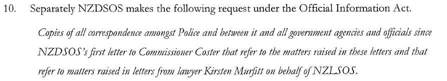 concerning NZLSOS’s correspondence to the police