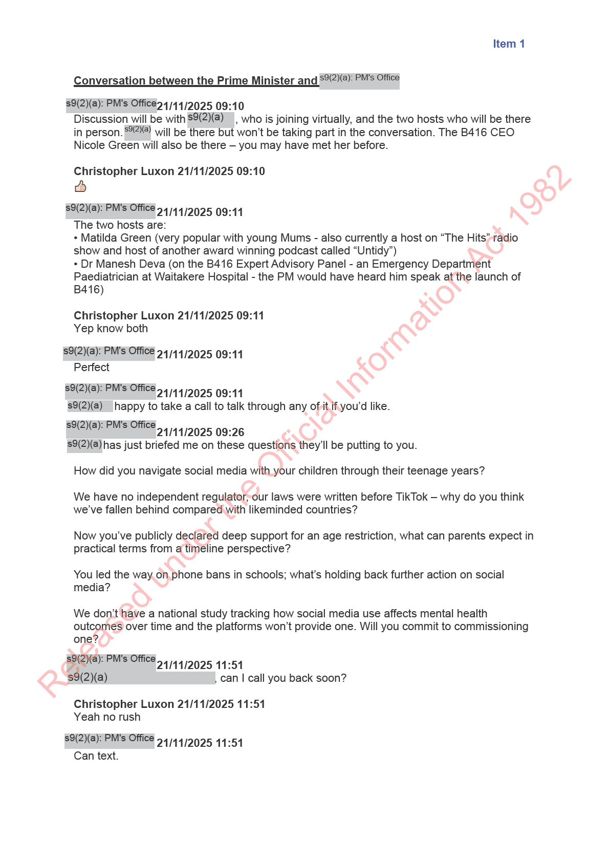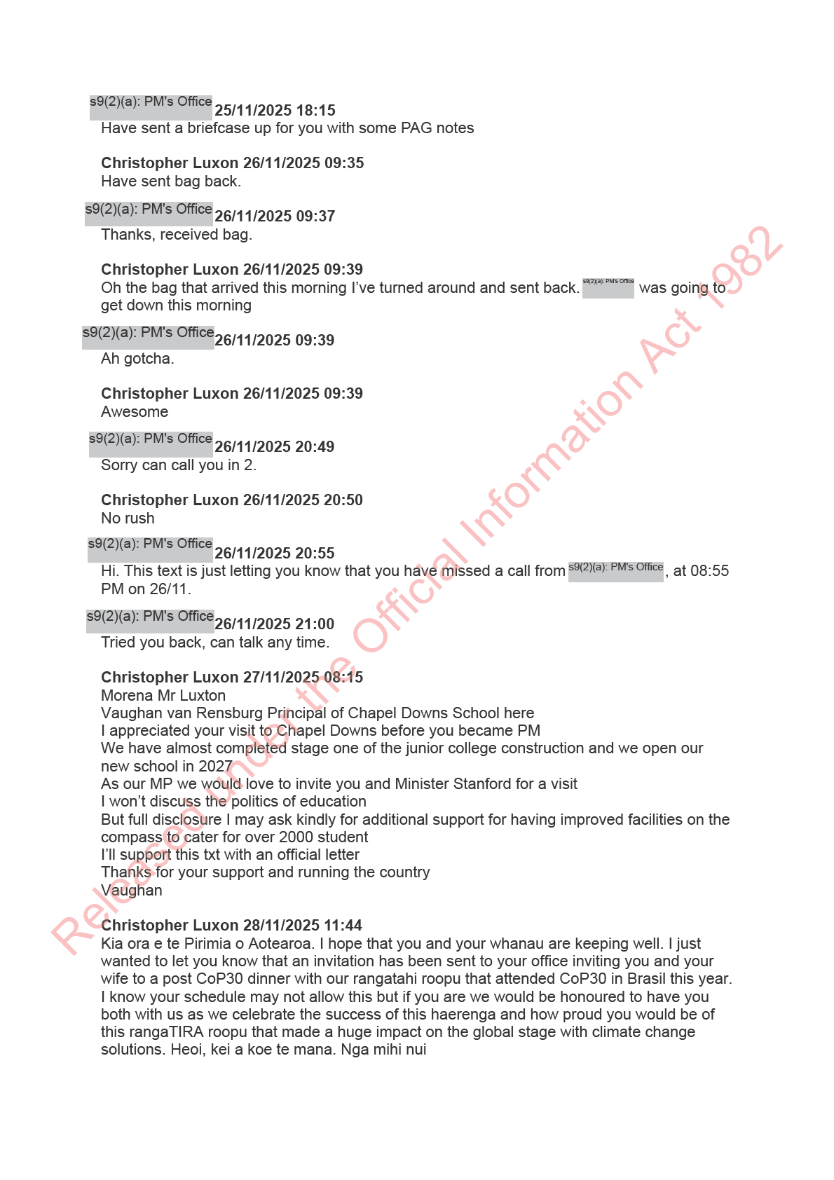 Conversation between the Prime Minister and Vaughan van Rensburg