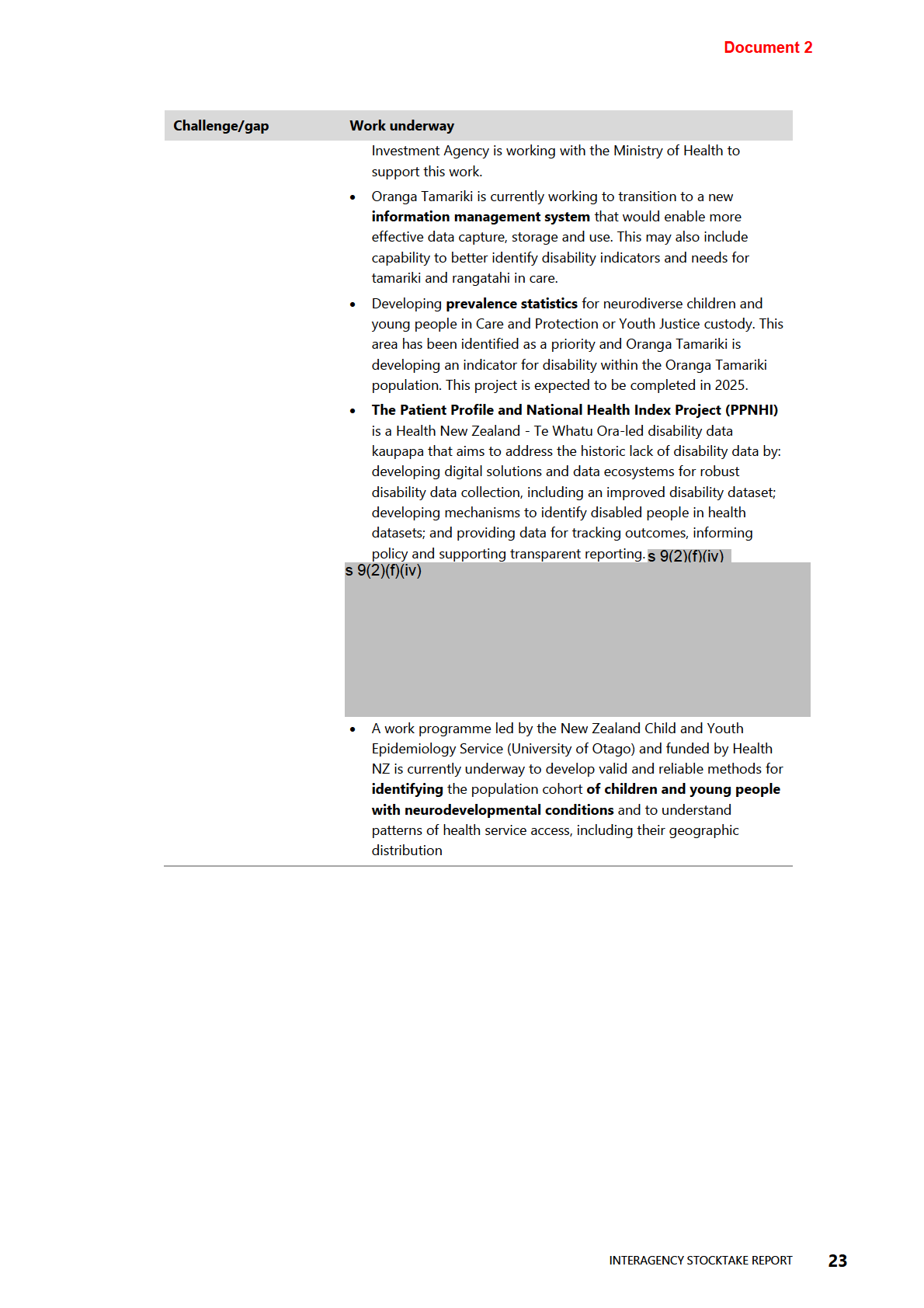 Ministry of Social Development and Whaikaha hold data on specific clinical diagnosis,