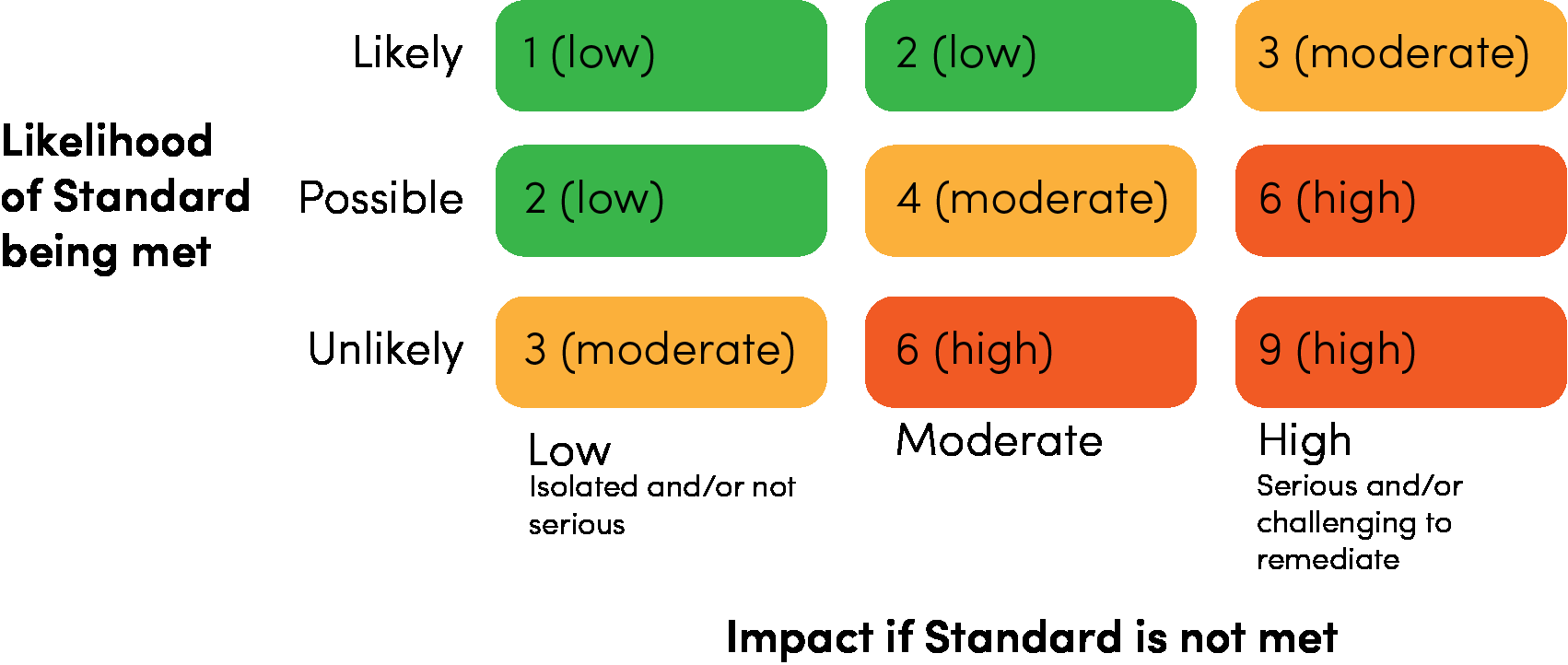 of each Standard continuing to be met against the severity of impact if the Standard is not met during