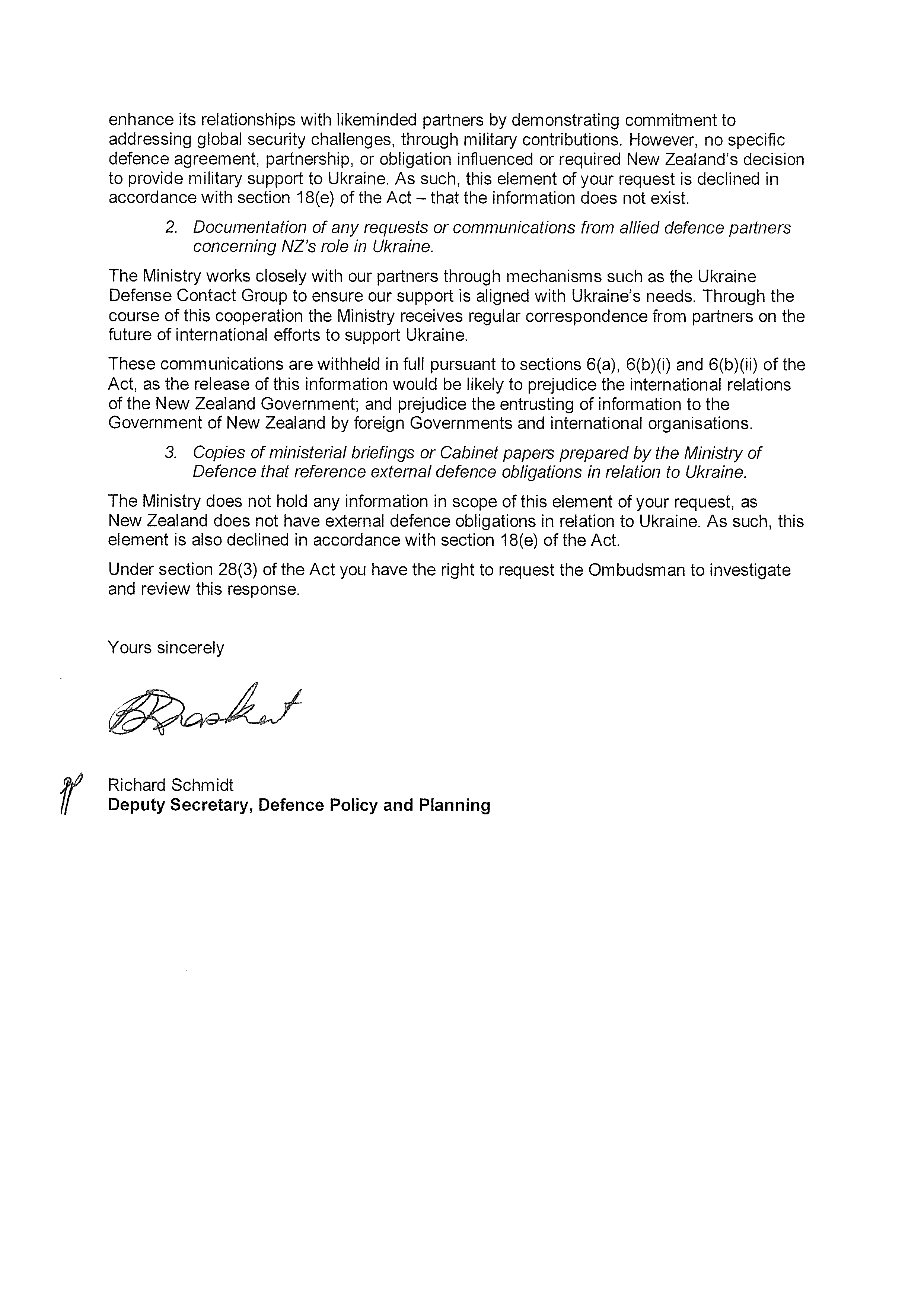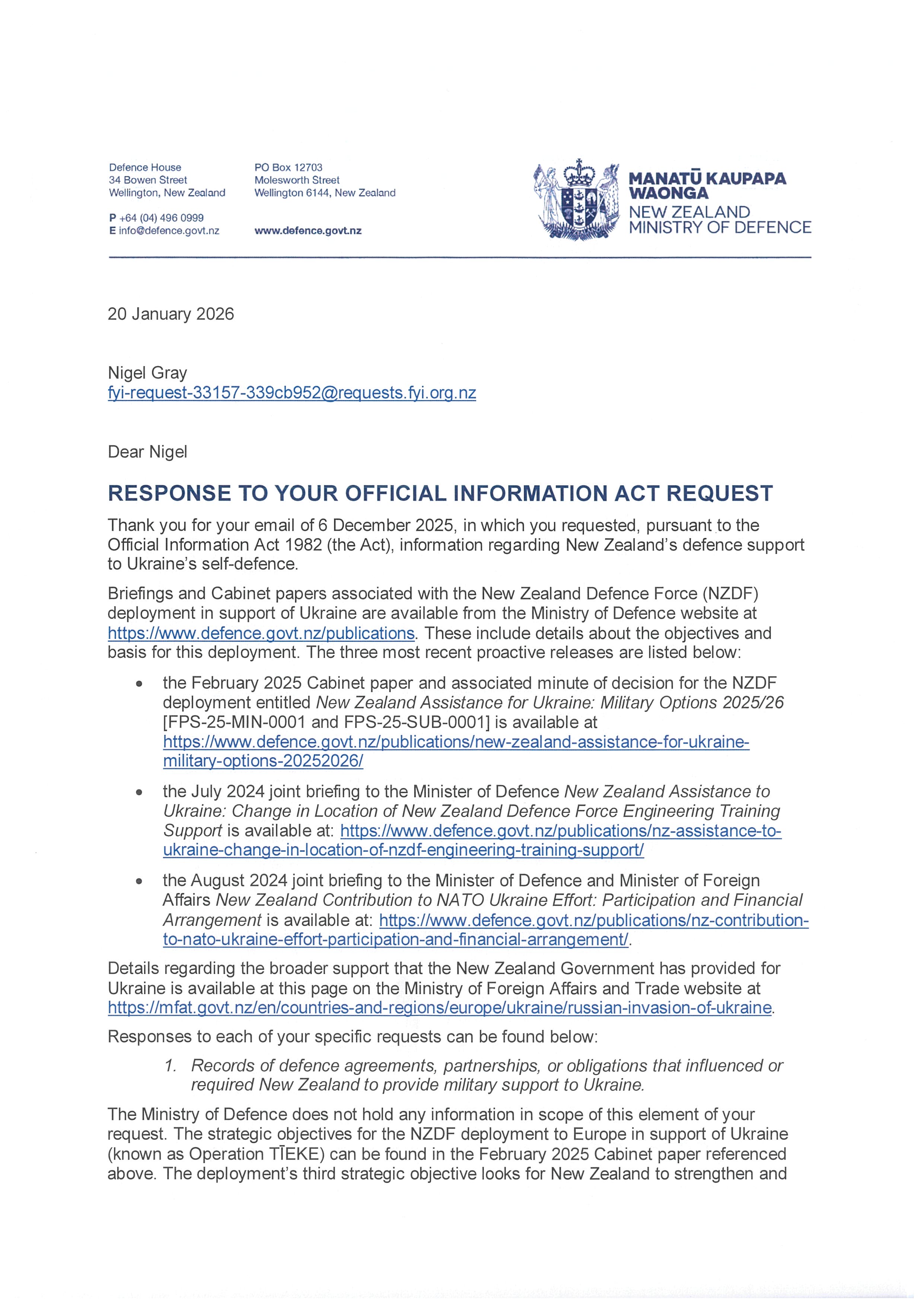 Defence Agreements and NZ Support for Ukraine