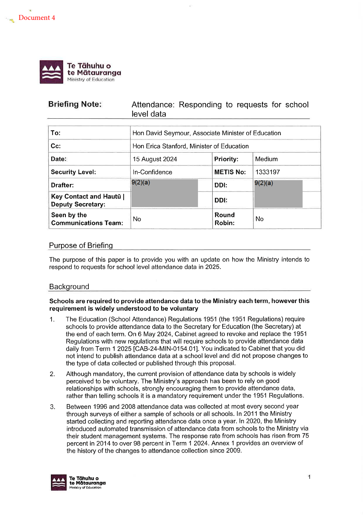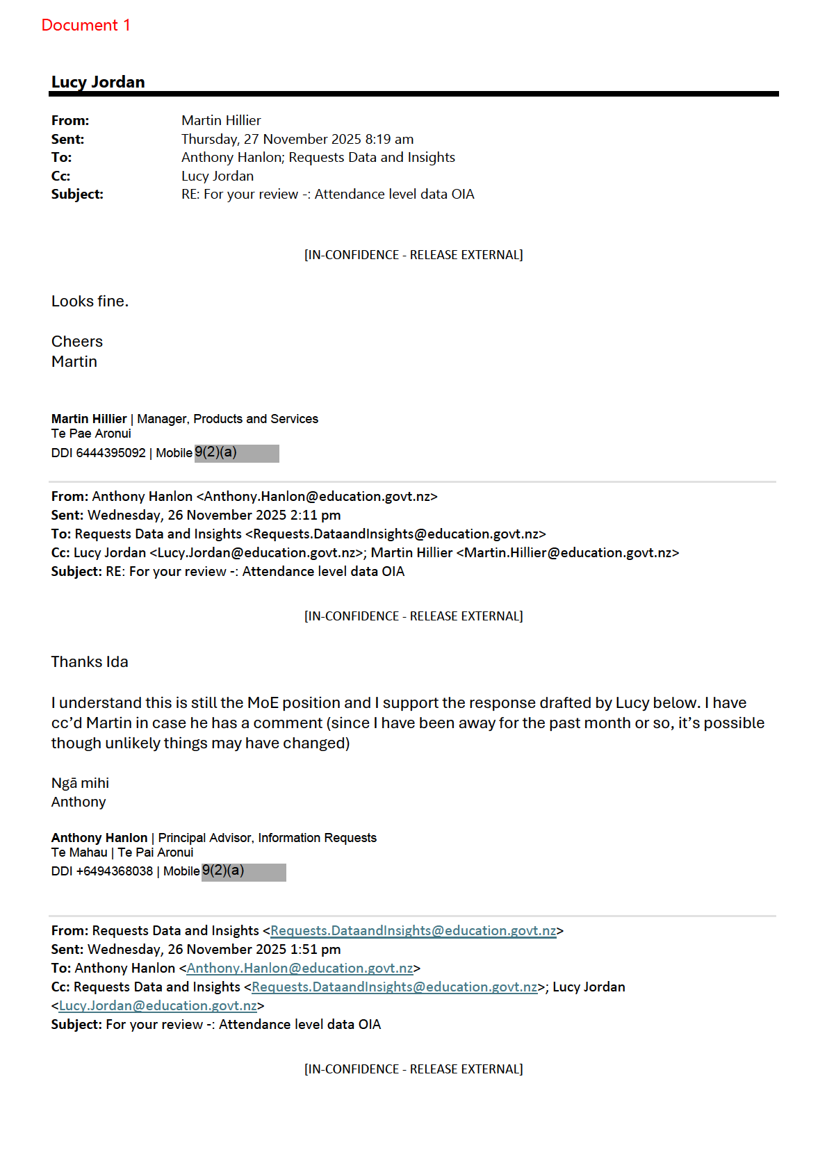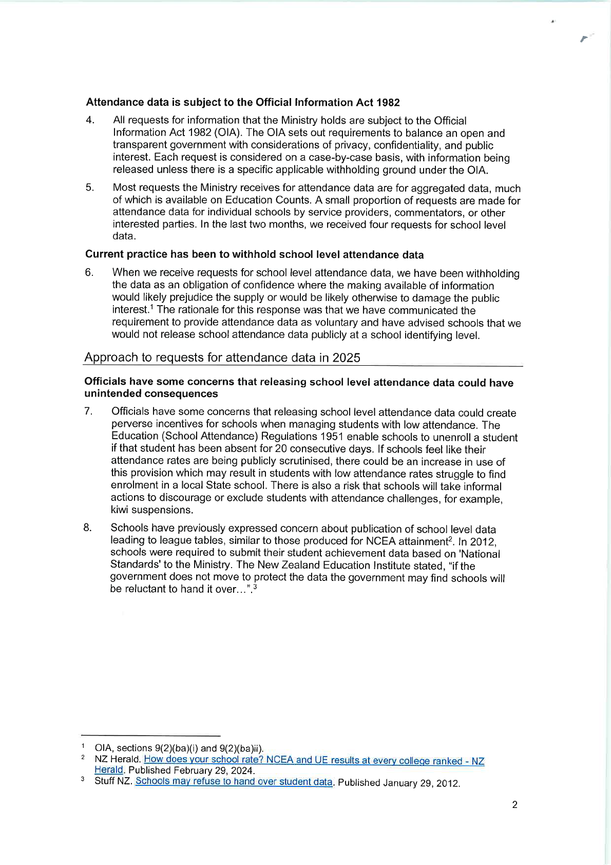 Schools provide attendance data to the Ministry on the basis that it is not released publicly at an