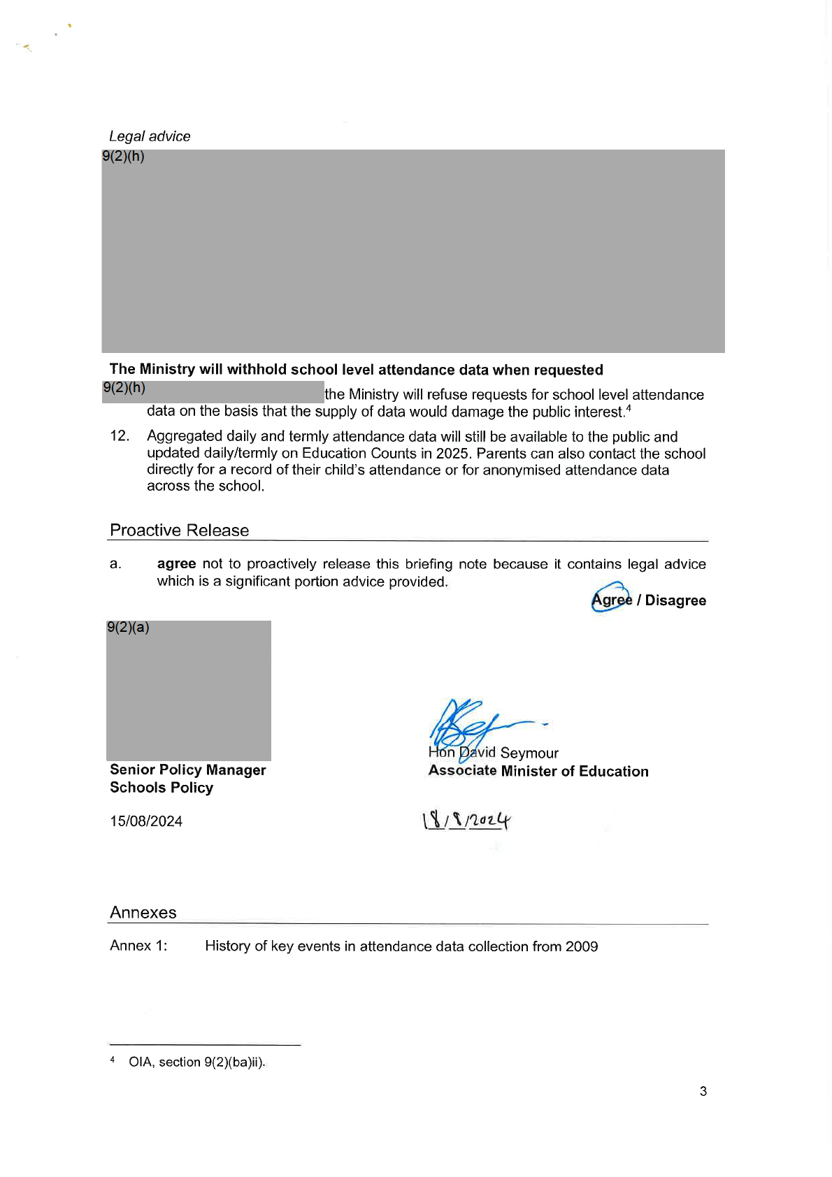 that the Ministry hasn’t changed our position that we do not release attendance data at a school
