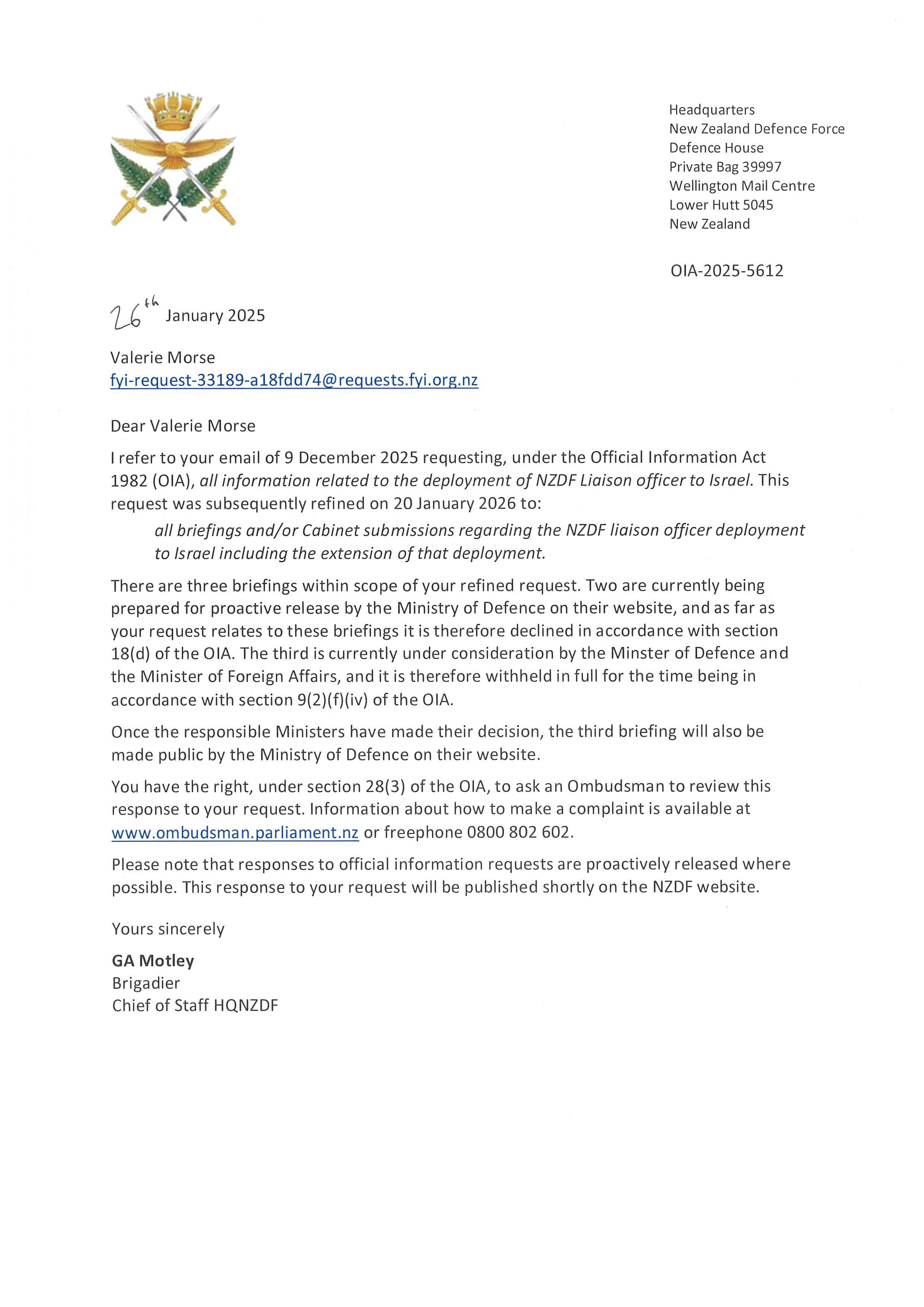 NZDF Liaison officer in Israel