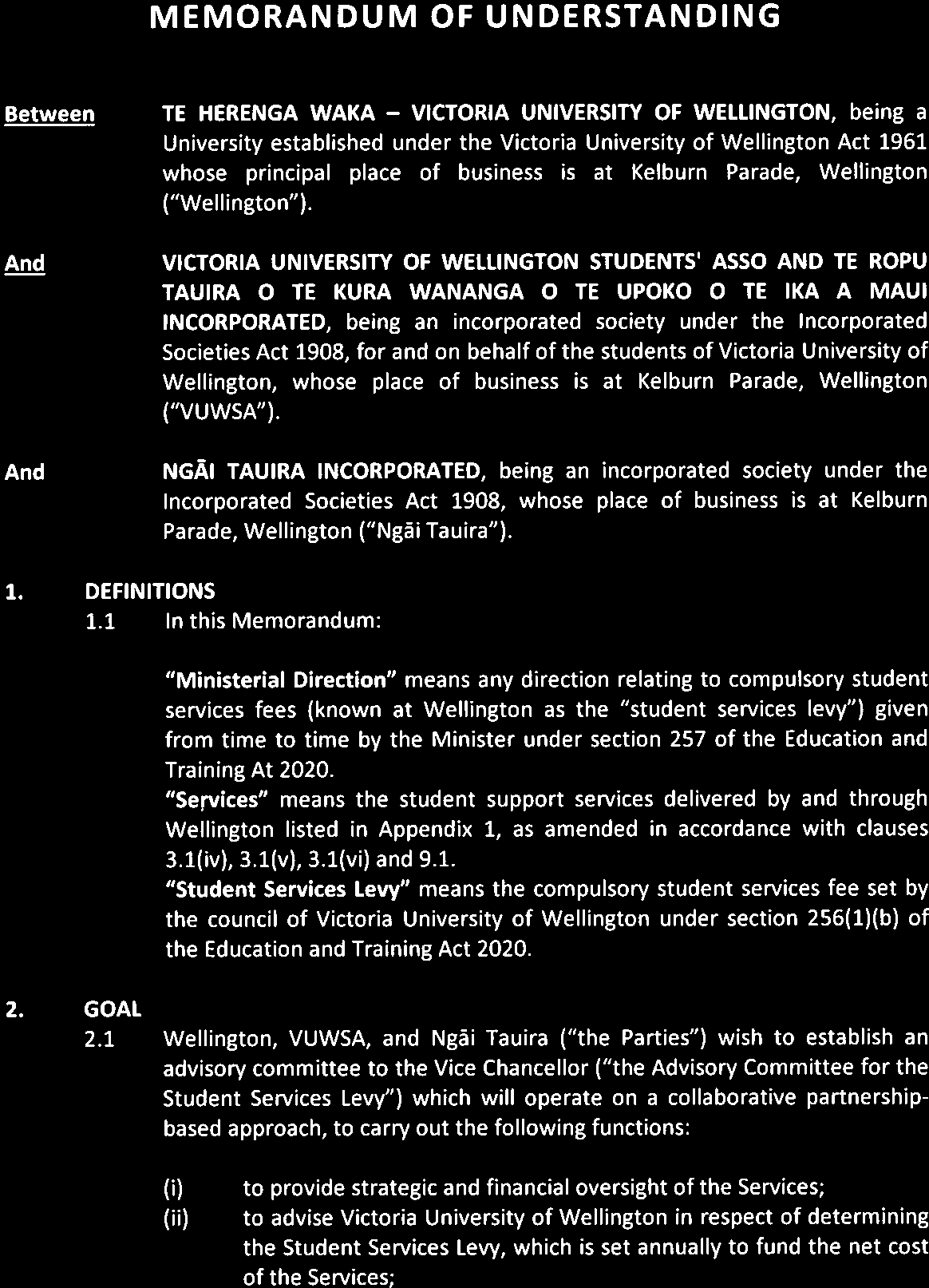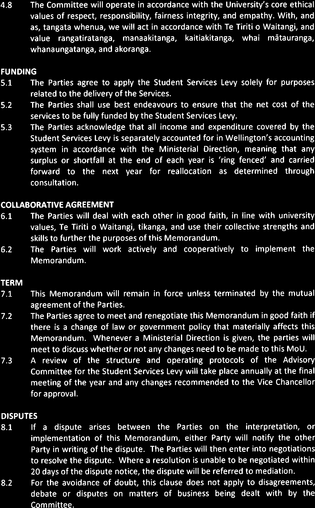 University of Wellington (the University) on the Advisory Committee on the Student Services