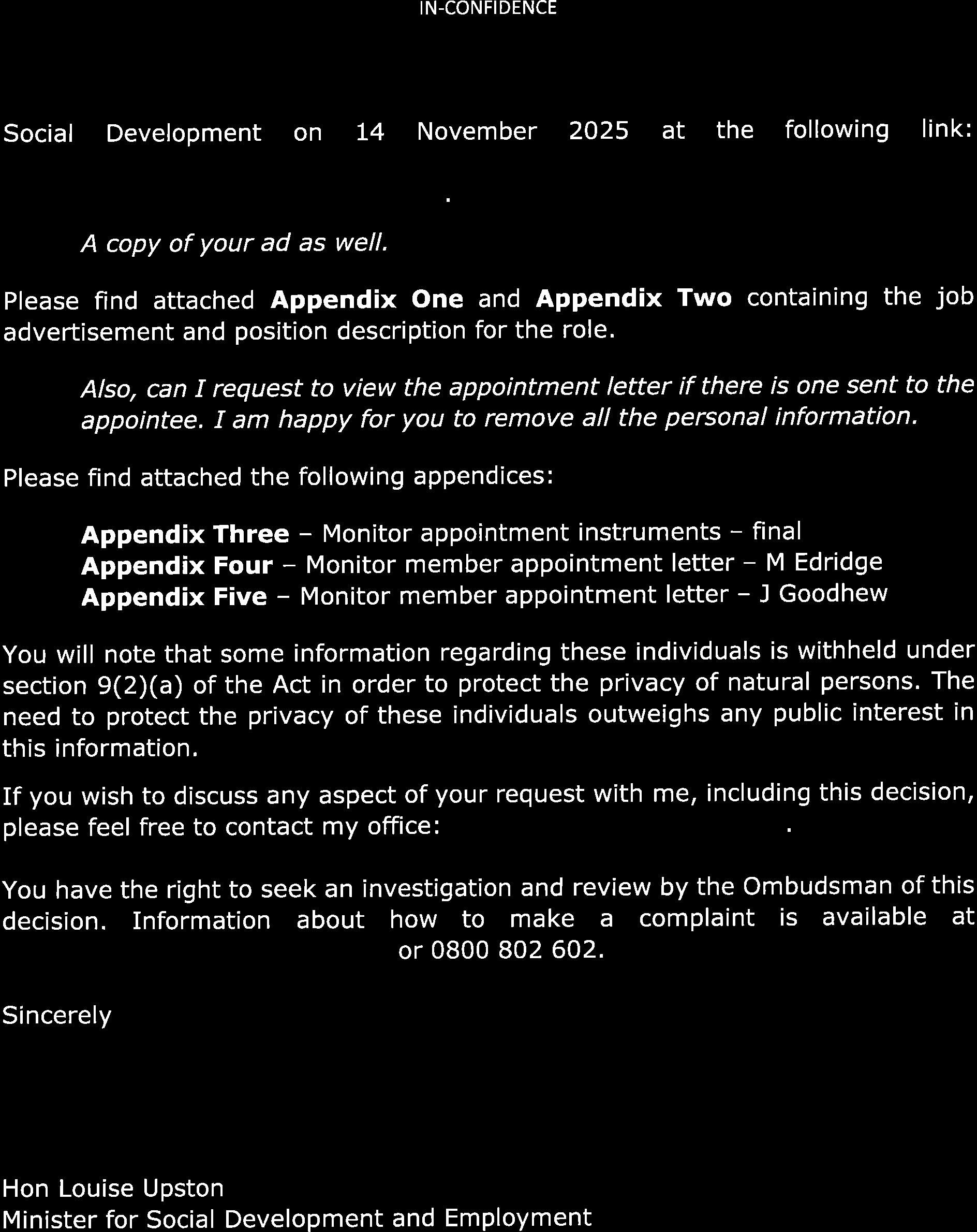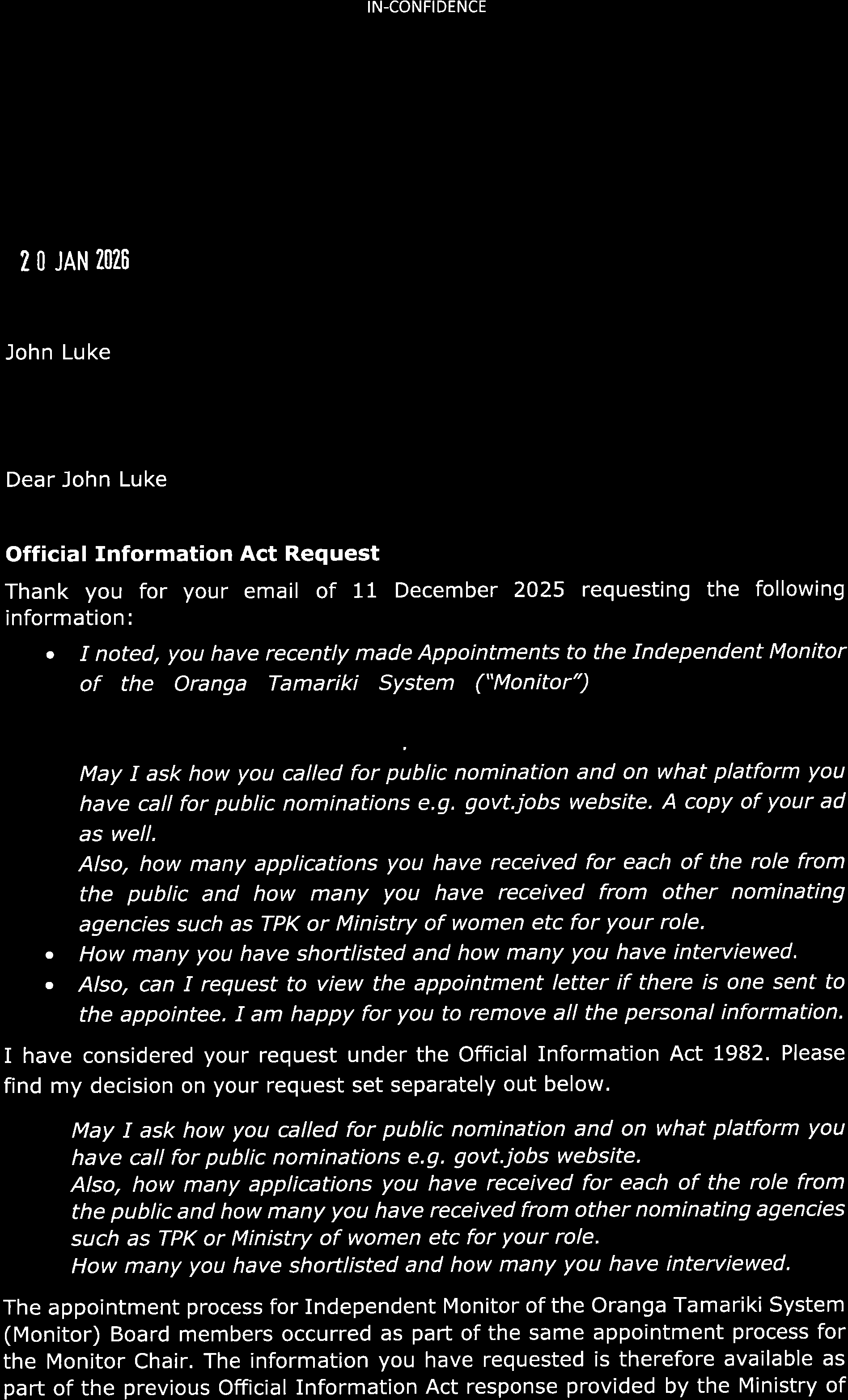 Appointments to the Independent Monitor of the Oranga Tamariki System (“Monitor”)