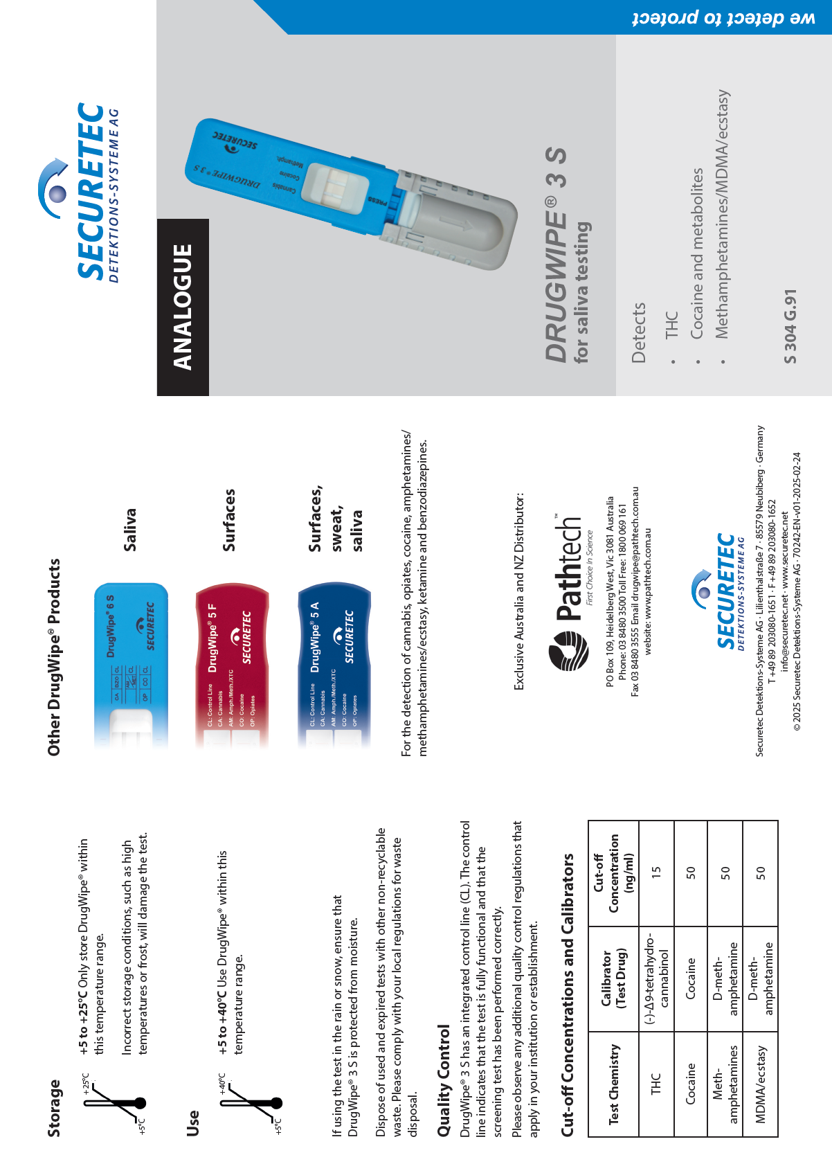 DrugWipe 3 S (S304G.91) test kits fulfil ed the criteria of Appendix C3 of AS/NZS 4760:2019 with