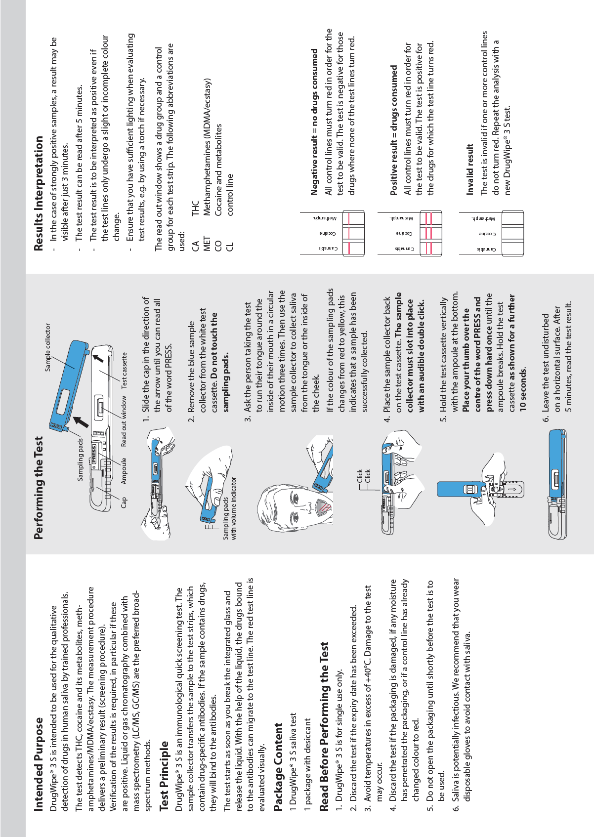 DrugWipe® sample collectors and tests were performed according to the enclosed instructions
