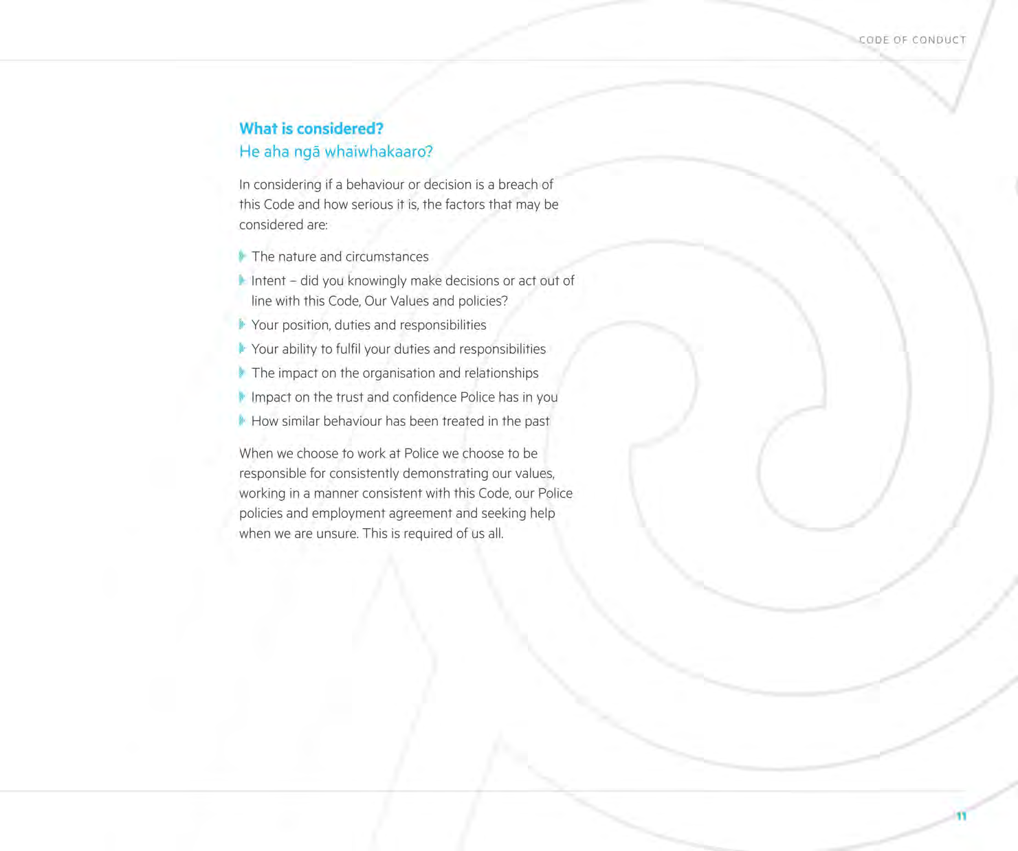 Please find attached a copy of the New Zealand Police Code of Conduct, which is a