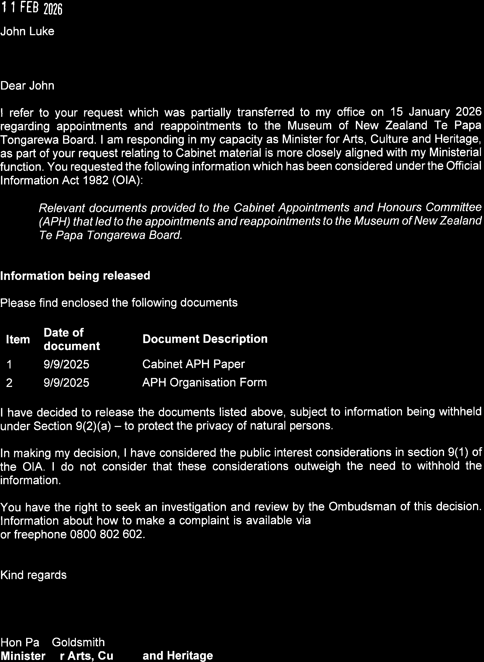 Released under the Official Informaiton Act 1982