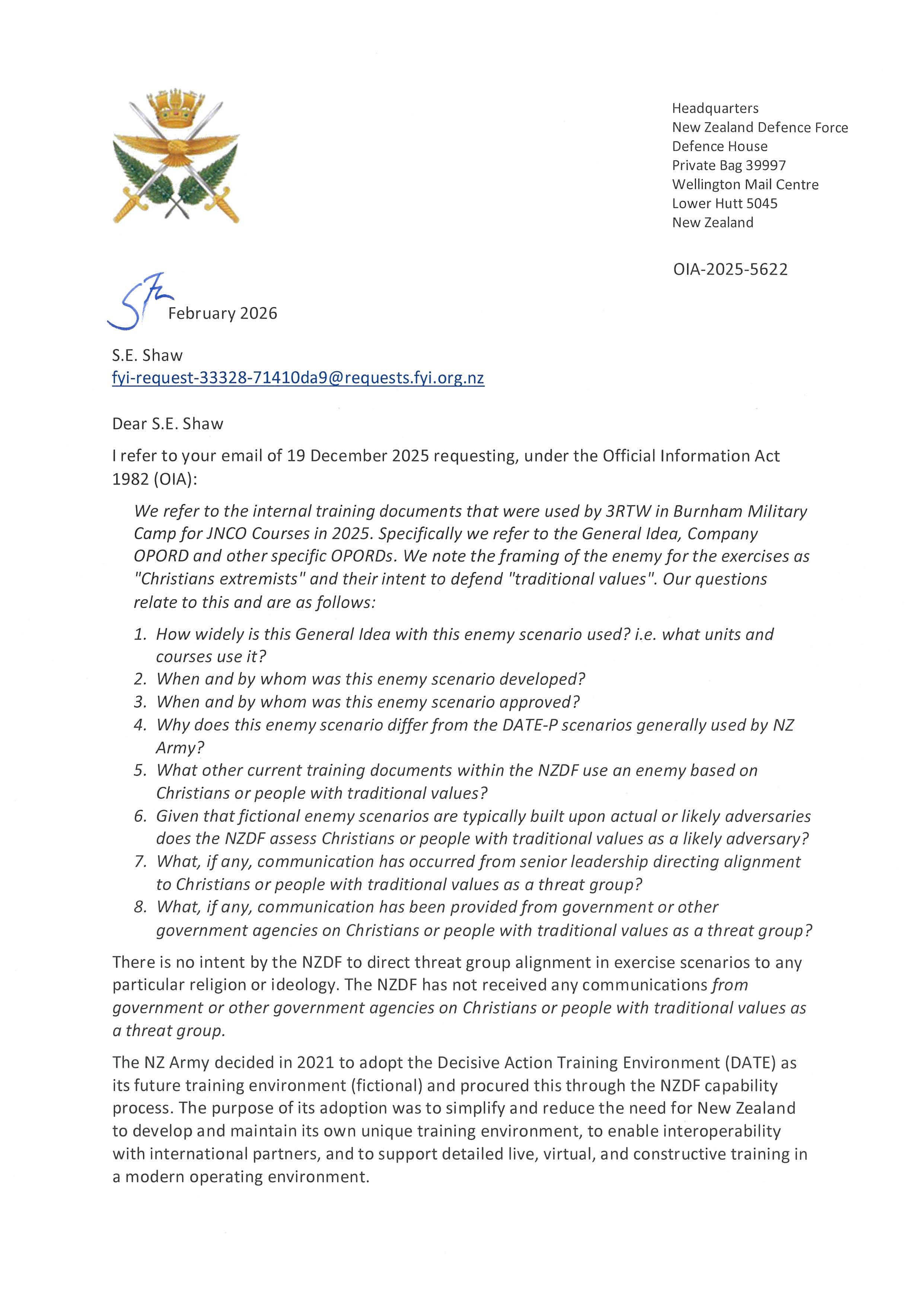 Framing of traditional Christians as enemy in NZ Army training