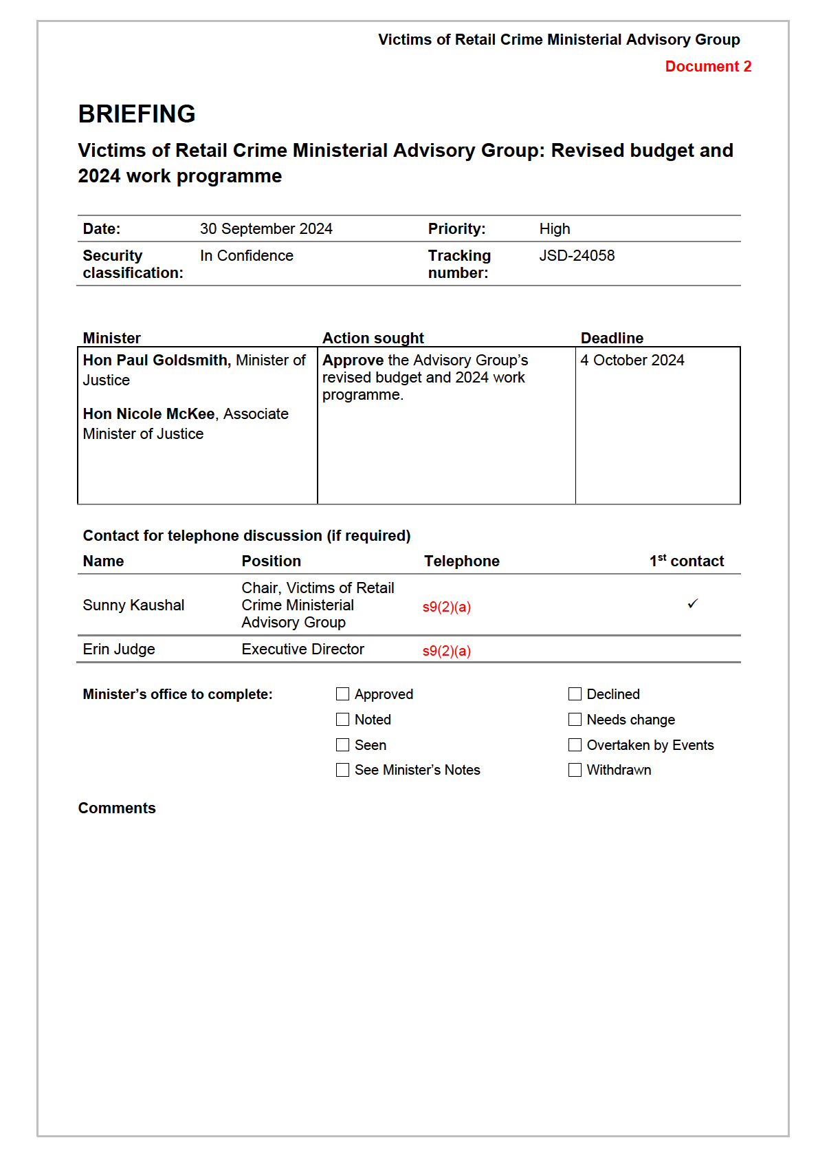This briefing seeks your approval for the revised operating budget and the 2024 work programme