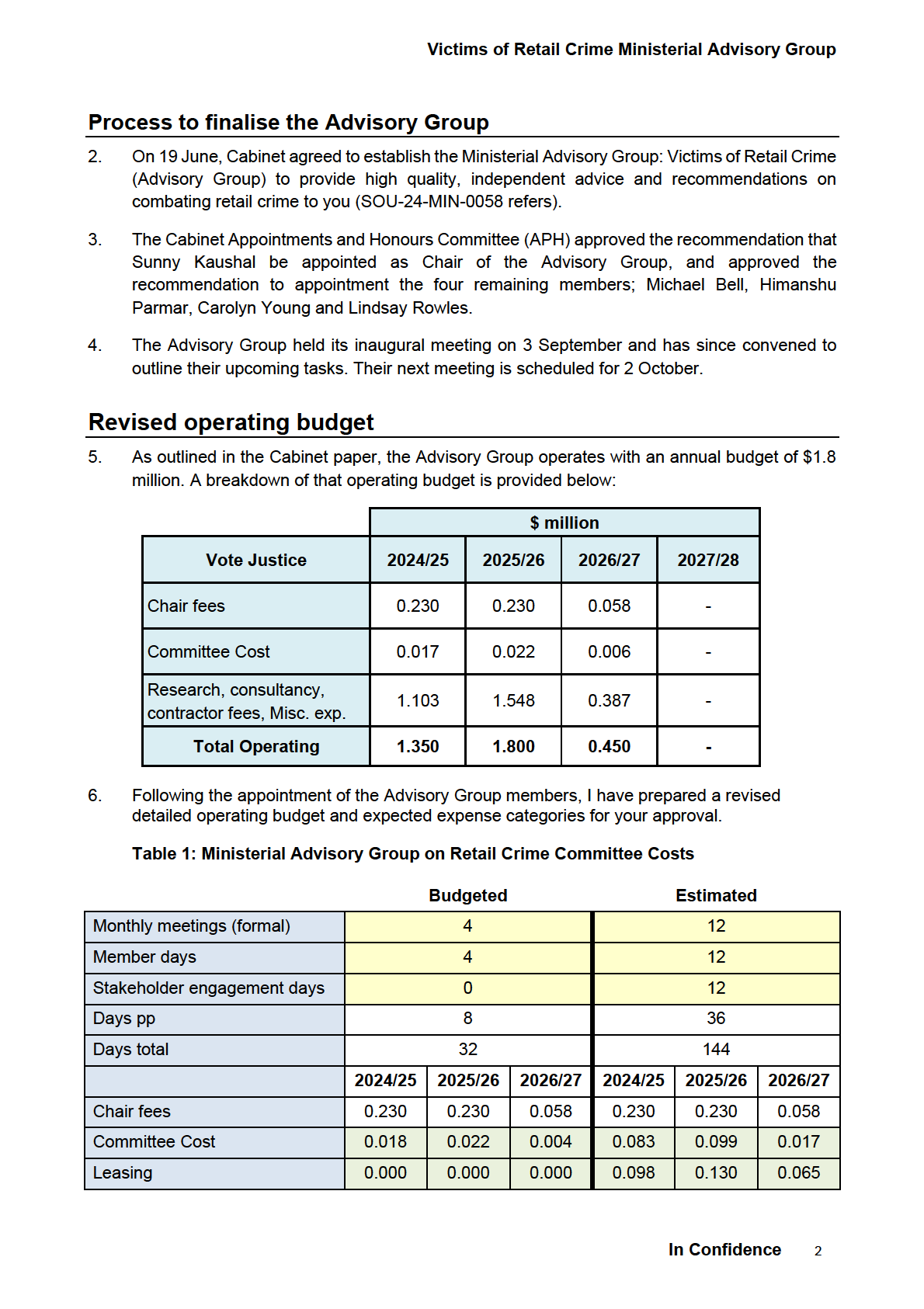 of the Victims of Retail Crime Ministerial Advisory Group (the Advisory Group).