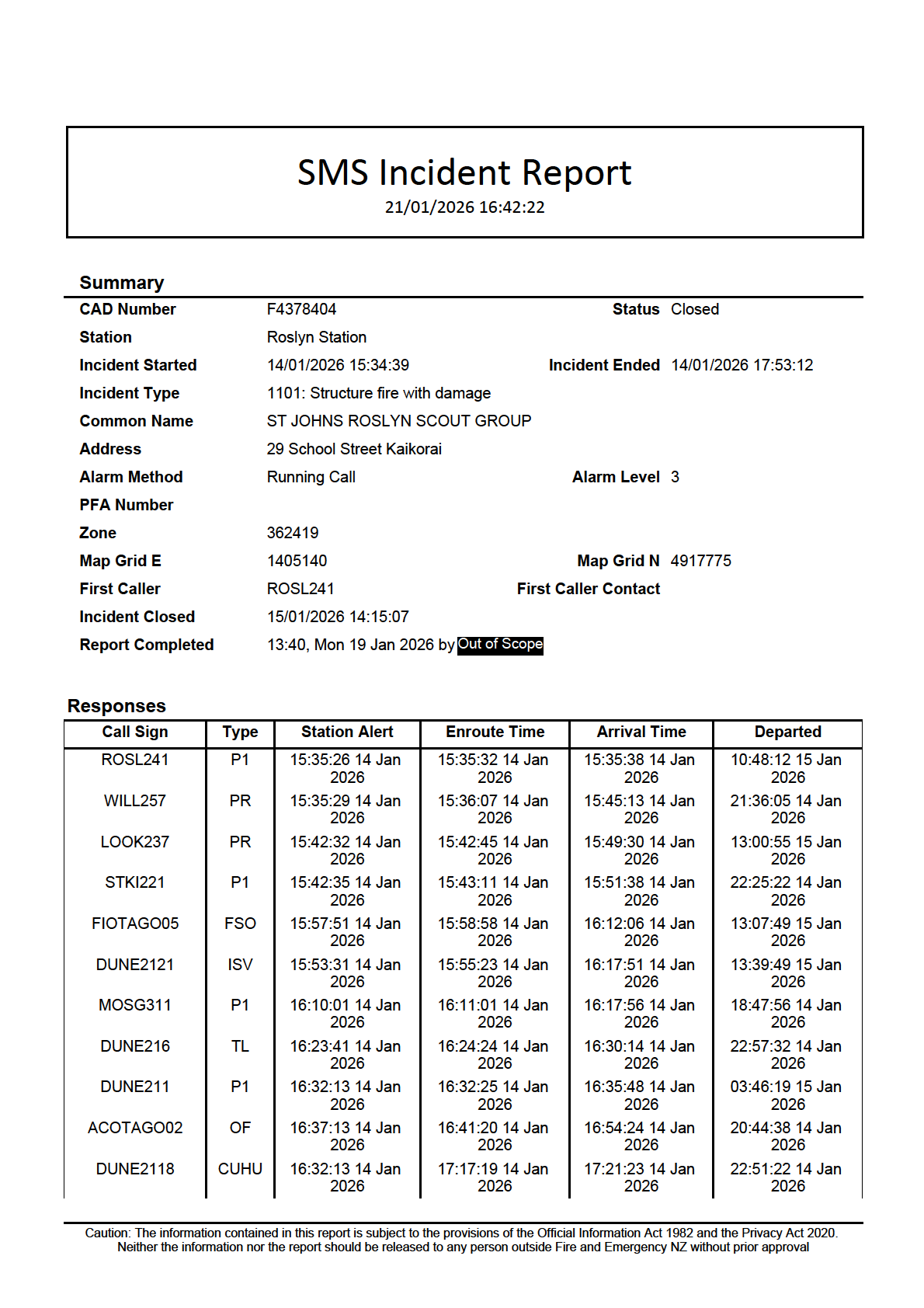 Caution: The information contained in this report is subject to the provisions of the Official Information Act 1982 and the Privacy Act 2020.
