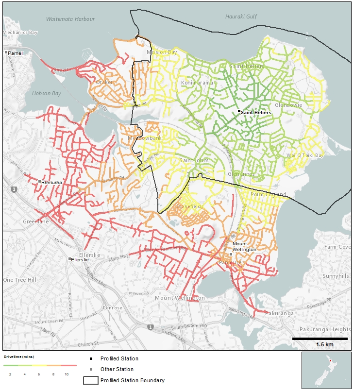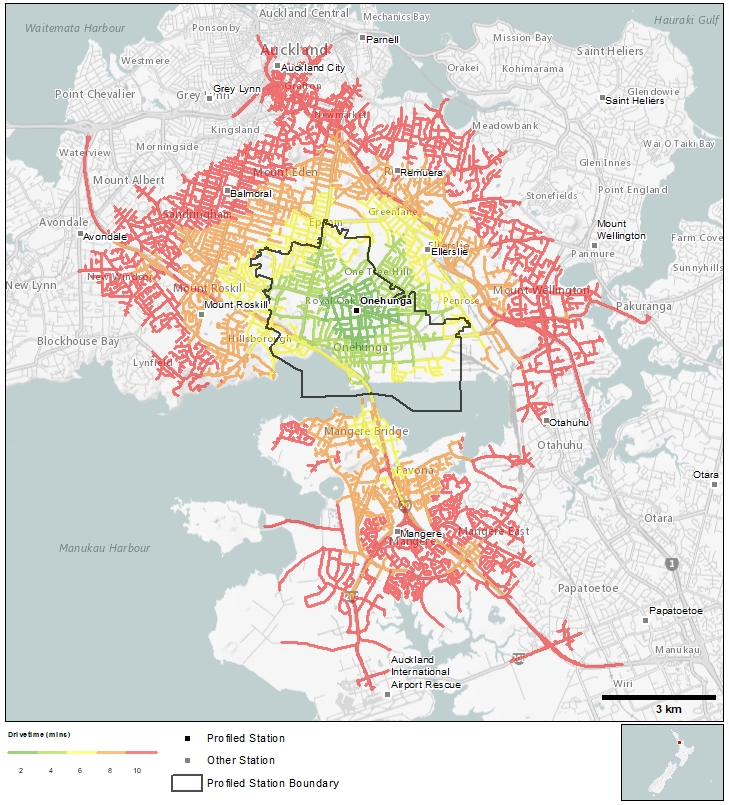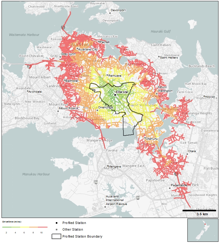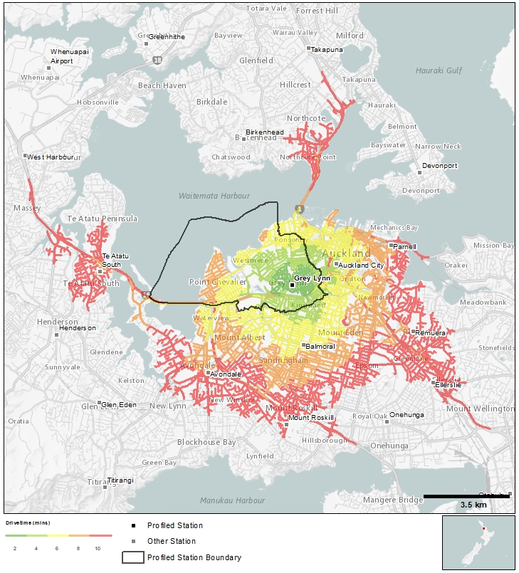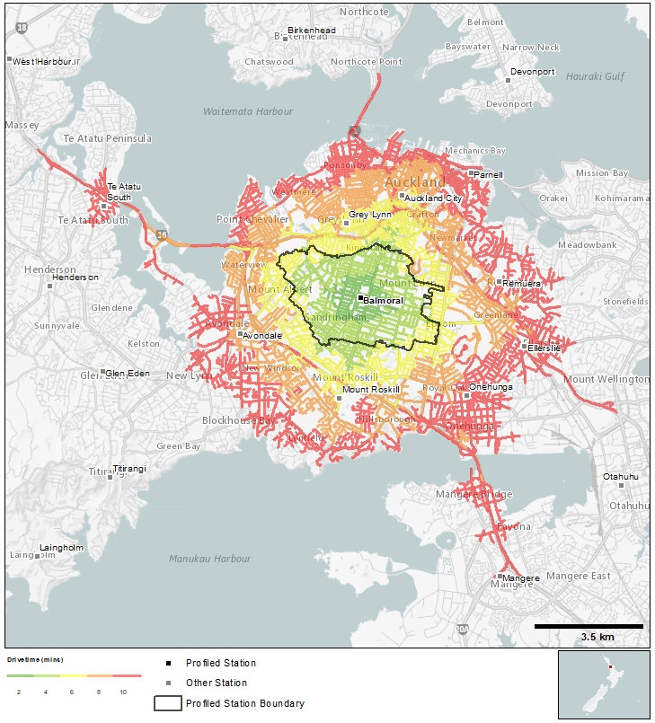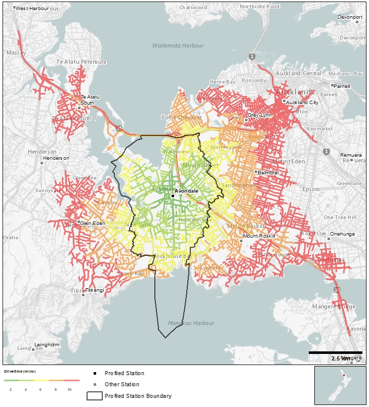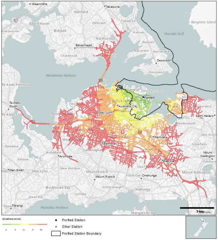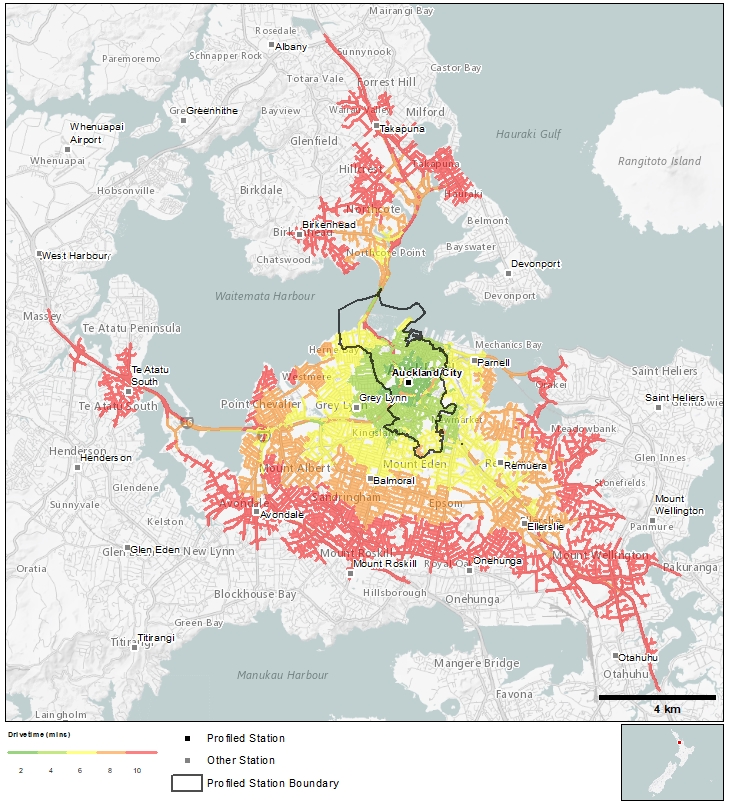 The map below indicates a drive time of up to 10 minutes from the station profiles including its neighbouring stations