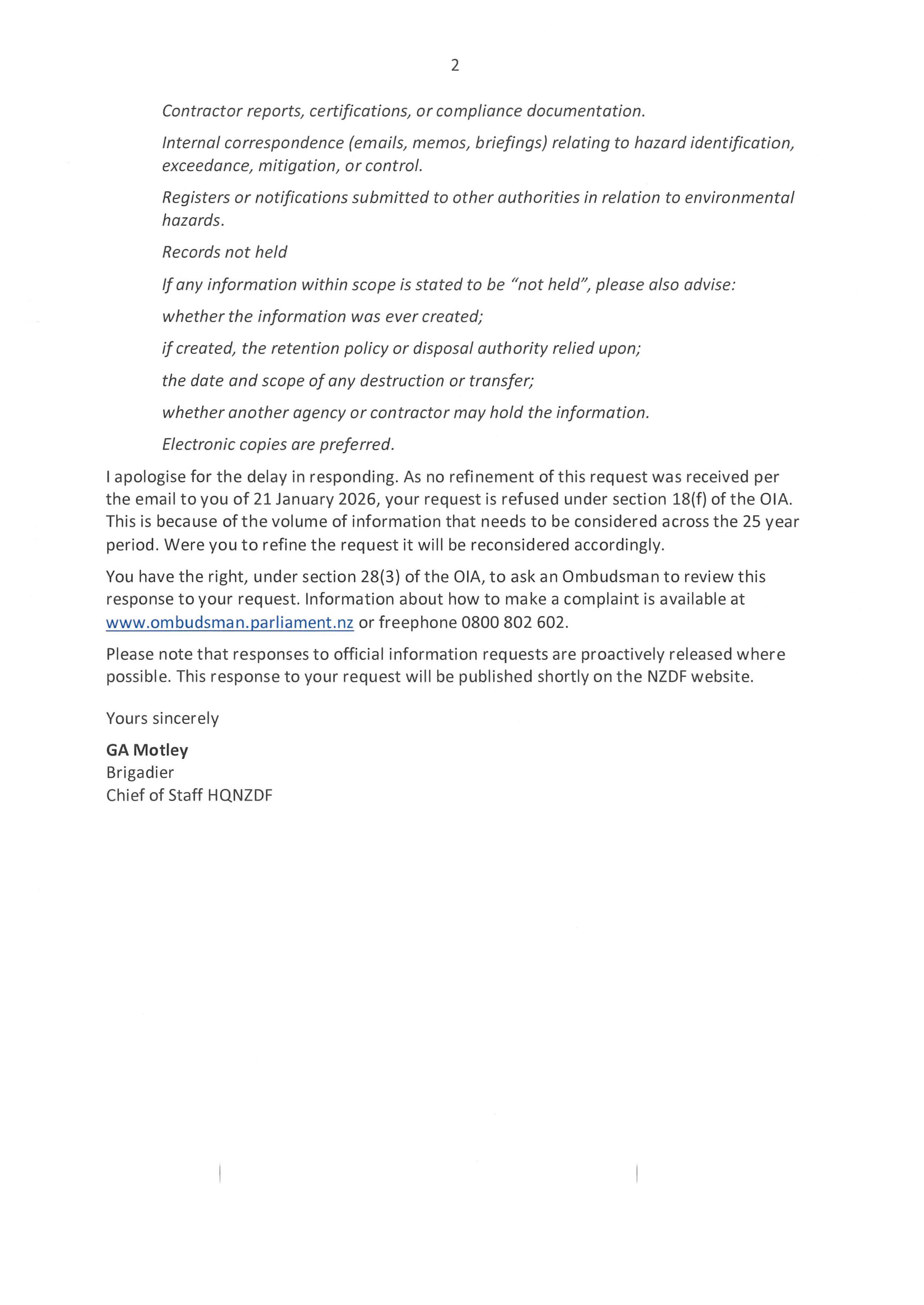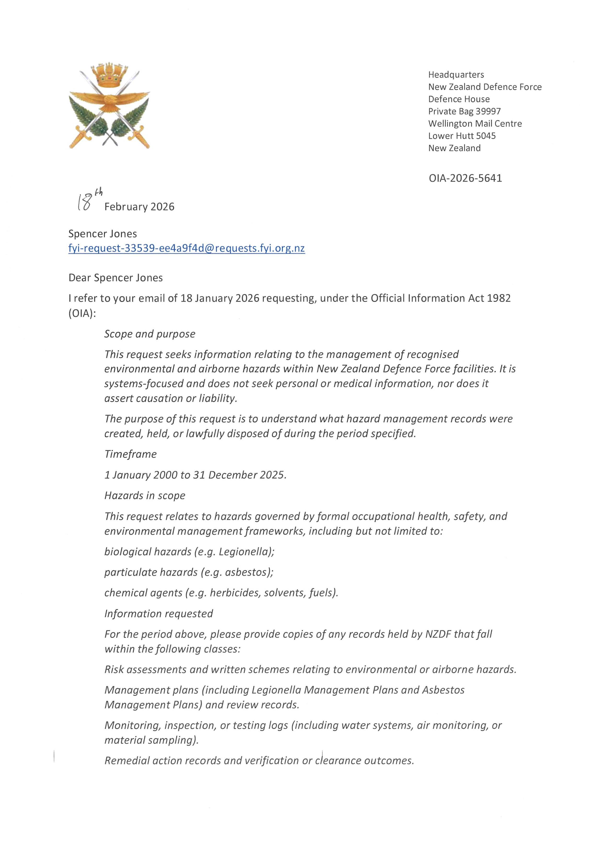 Official Information Act request: Environmental and airborne hazard management records (2000–2025)