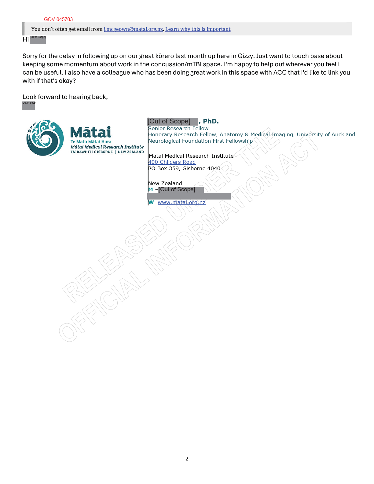 Subject: RE: Kaupapa Wairoro Brain development and injury