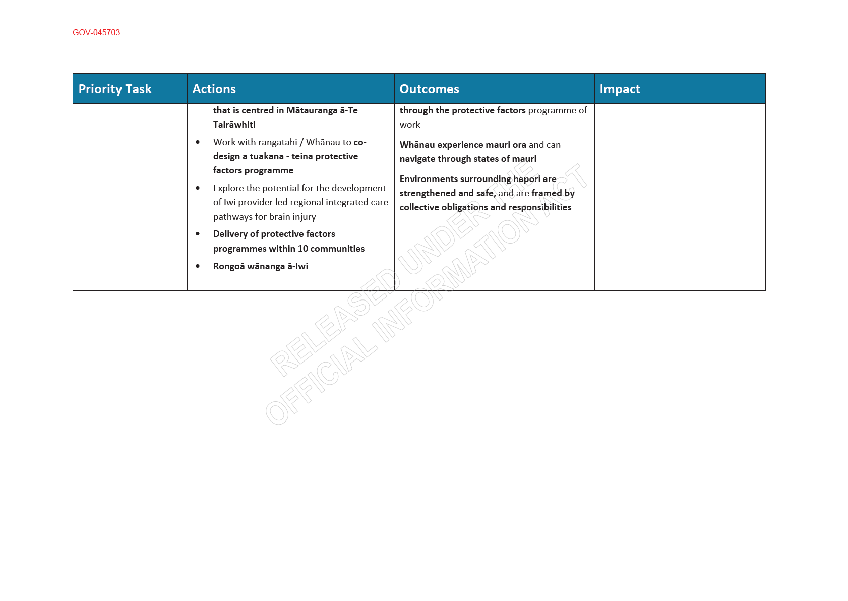 Please find attached our up-dated table for the Kaupapa Wairoro.