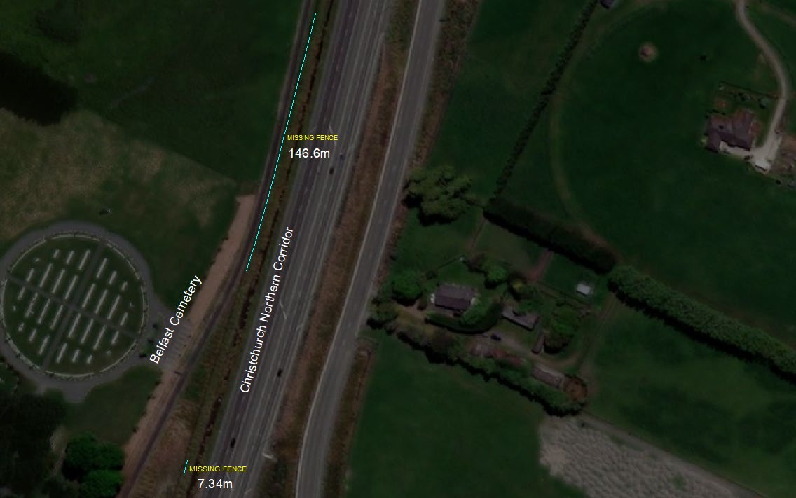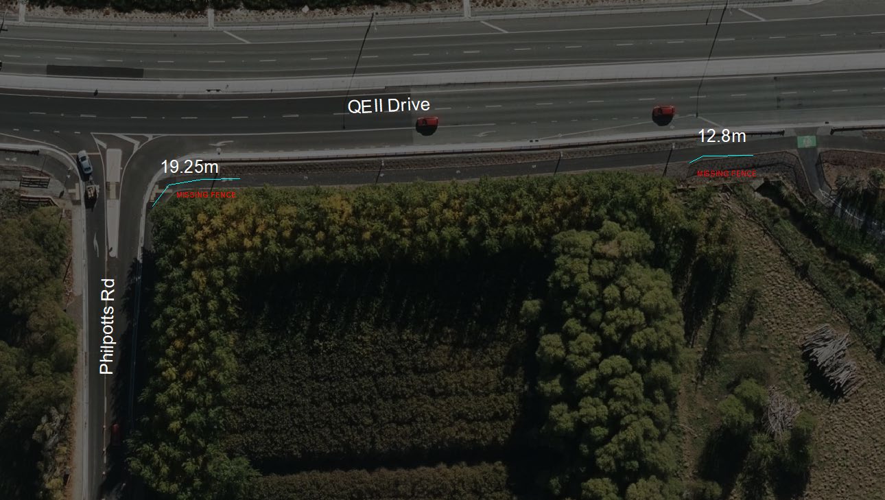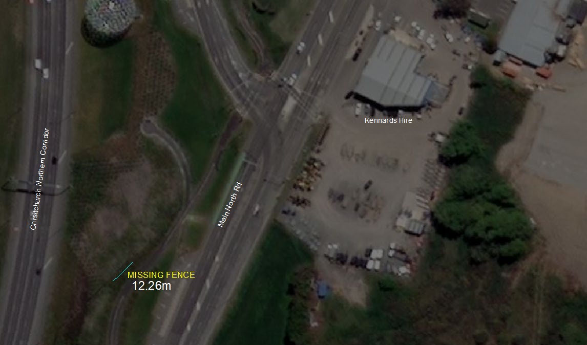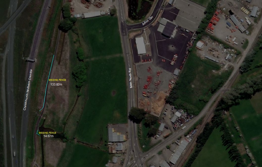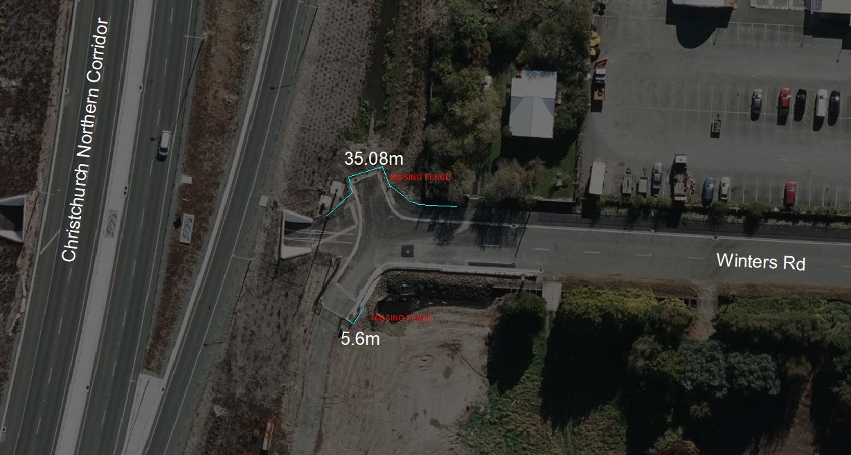 Missing or damaged black fencing relating to Christchurch Northern Corridor (CNC)