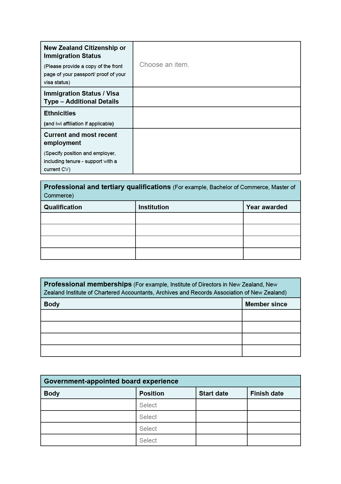 • Governance experience