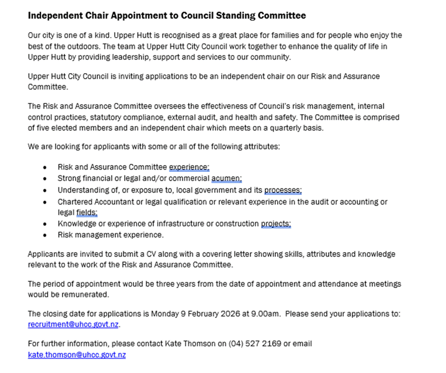 The advert has been placed on our Upper Hutt City Council website and on