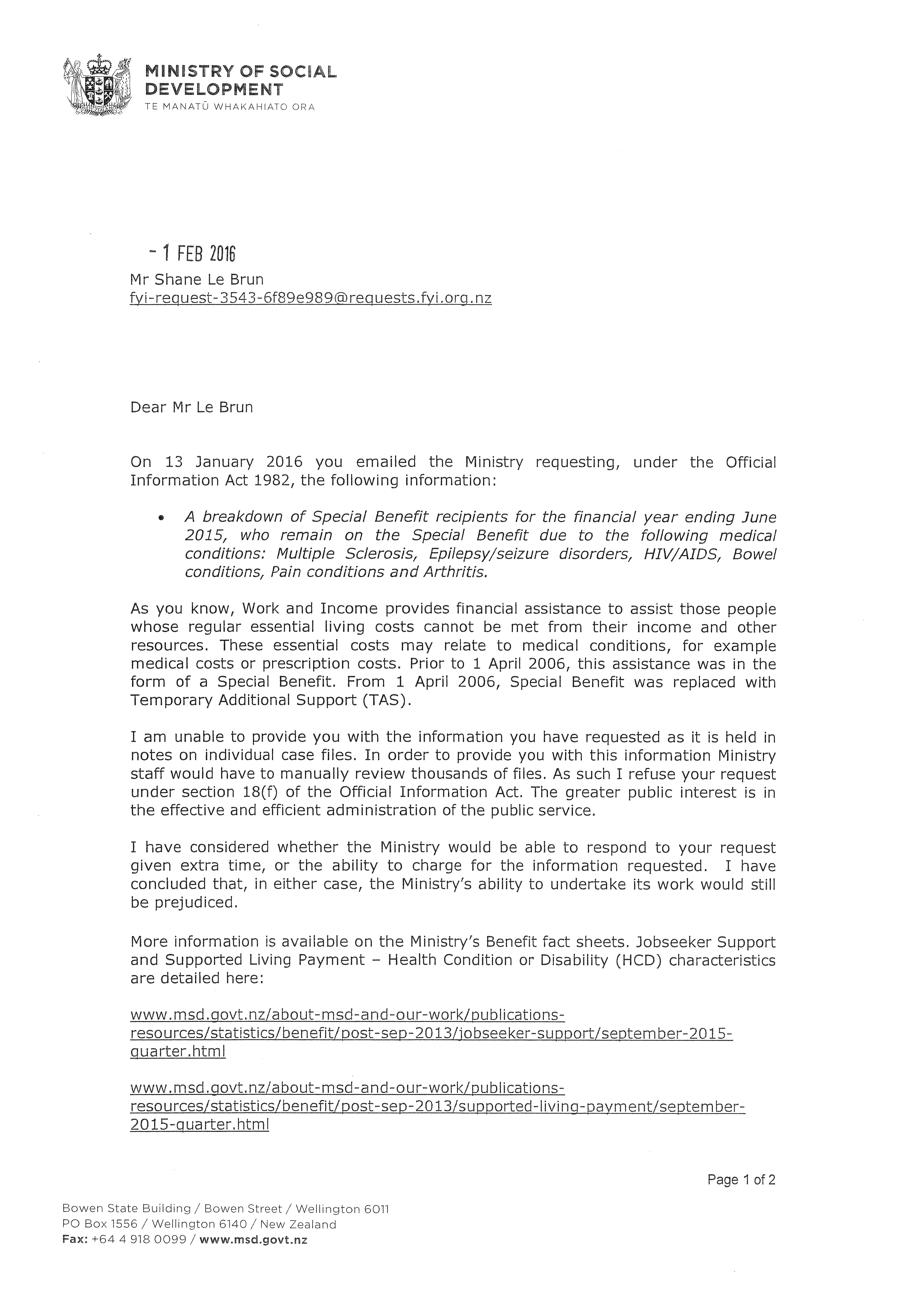 This is an HTML version of an attachment to the Official Information request '