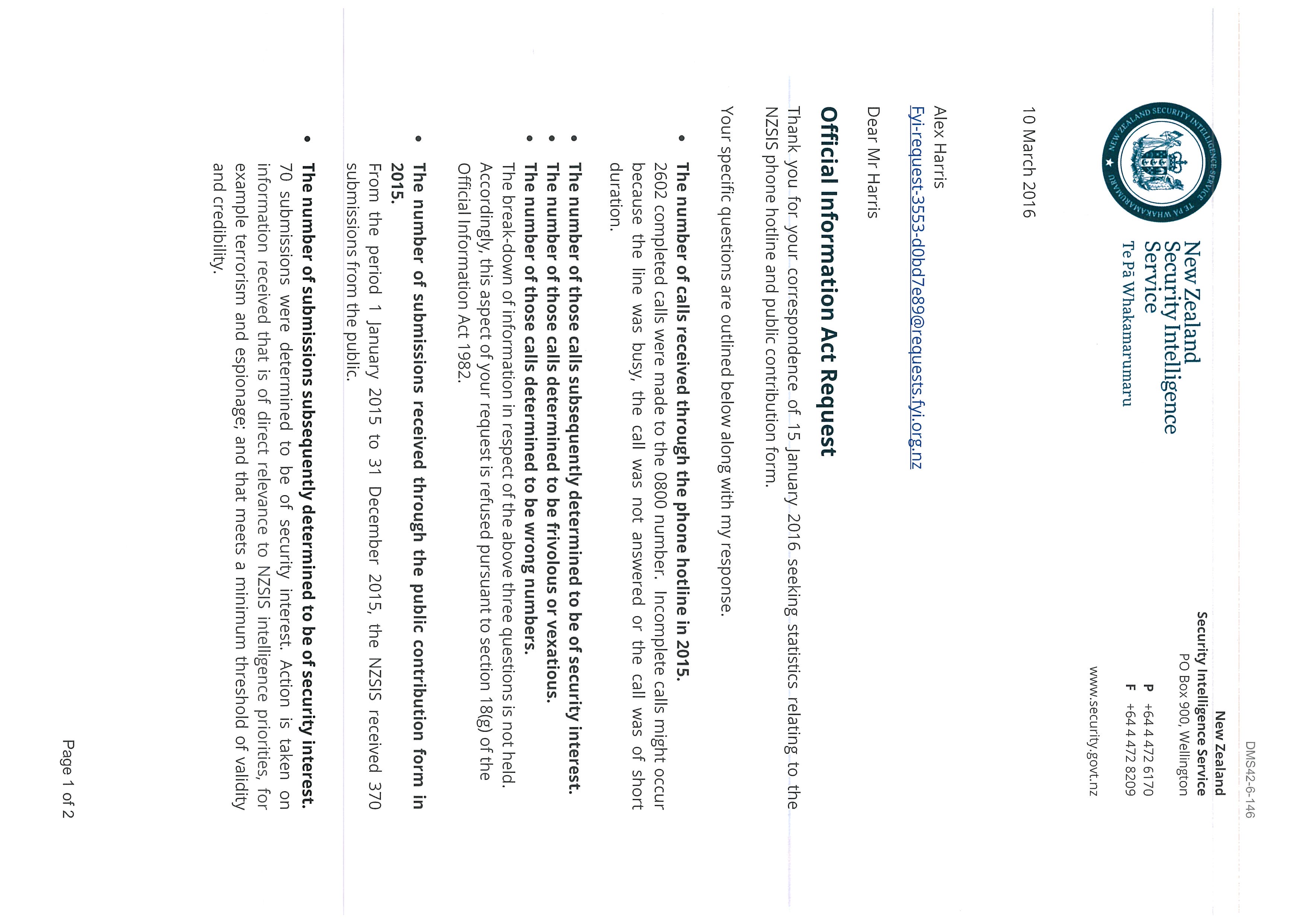 Statistics on SIS phone hotline and public contribution form