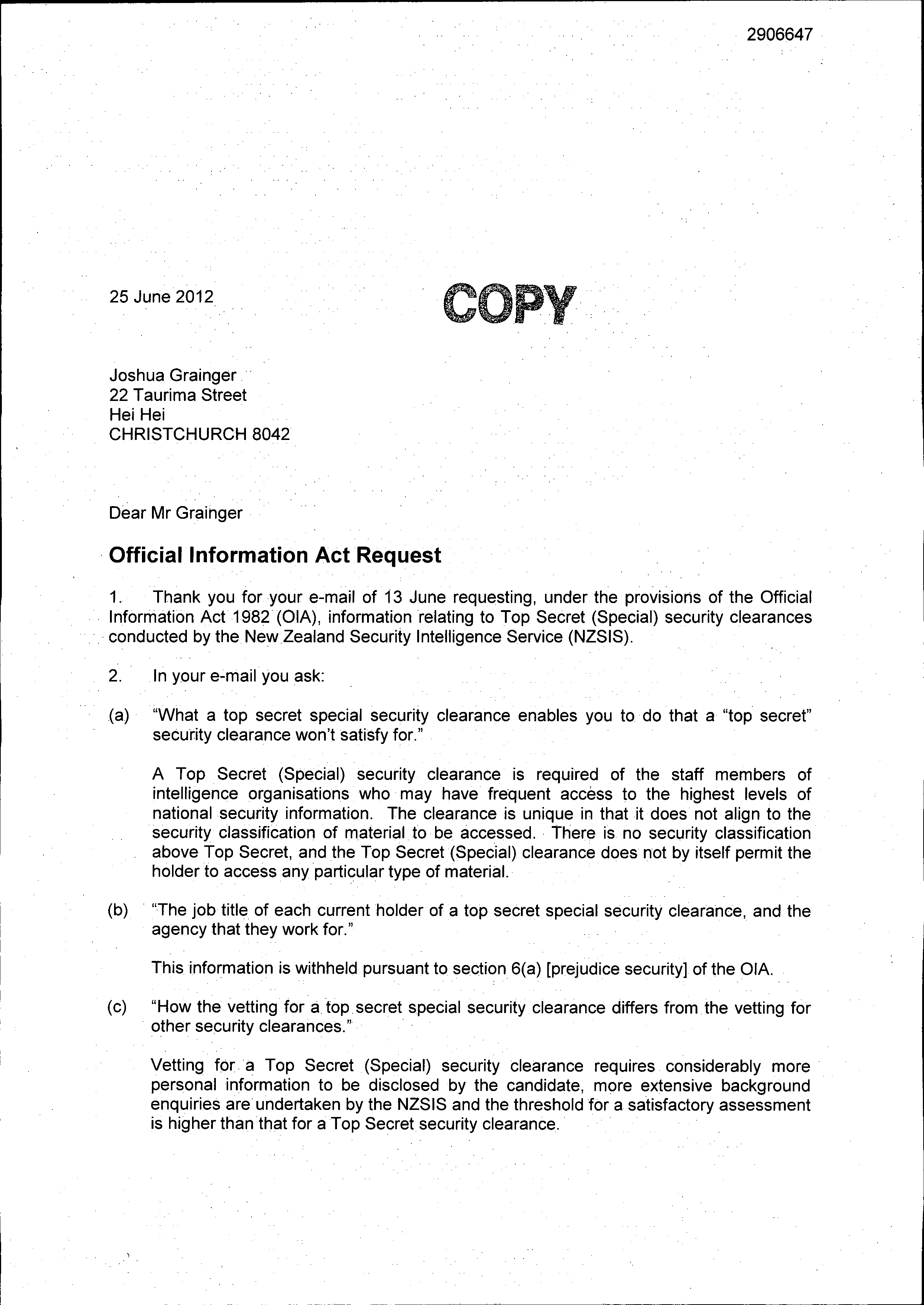 enquiries are undertaken by the NZSIS and the threshold for a satisfactory assessment