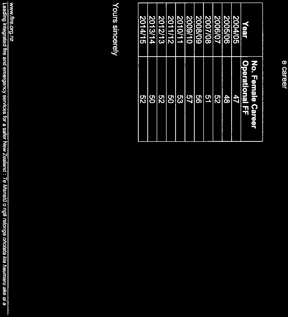 Number of female career operational fire fighters