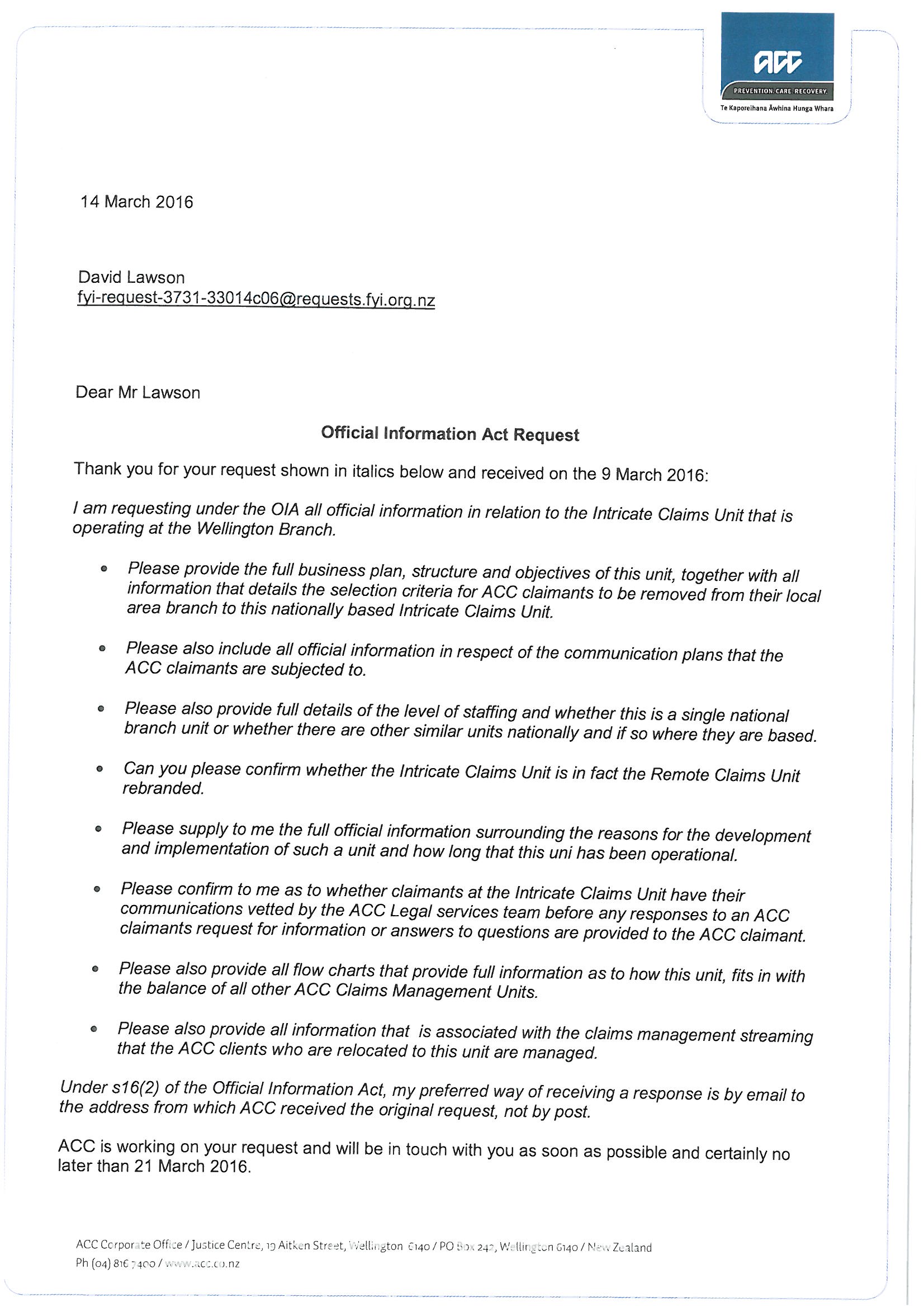 Intricate Claims Unit Wellington Branch