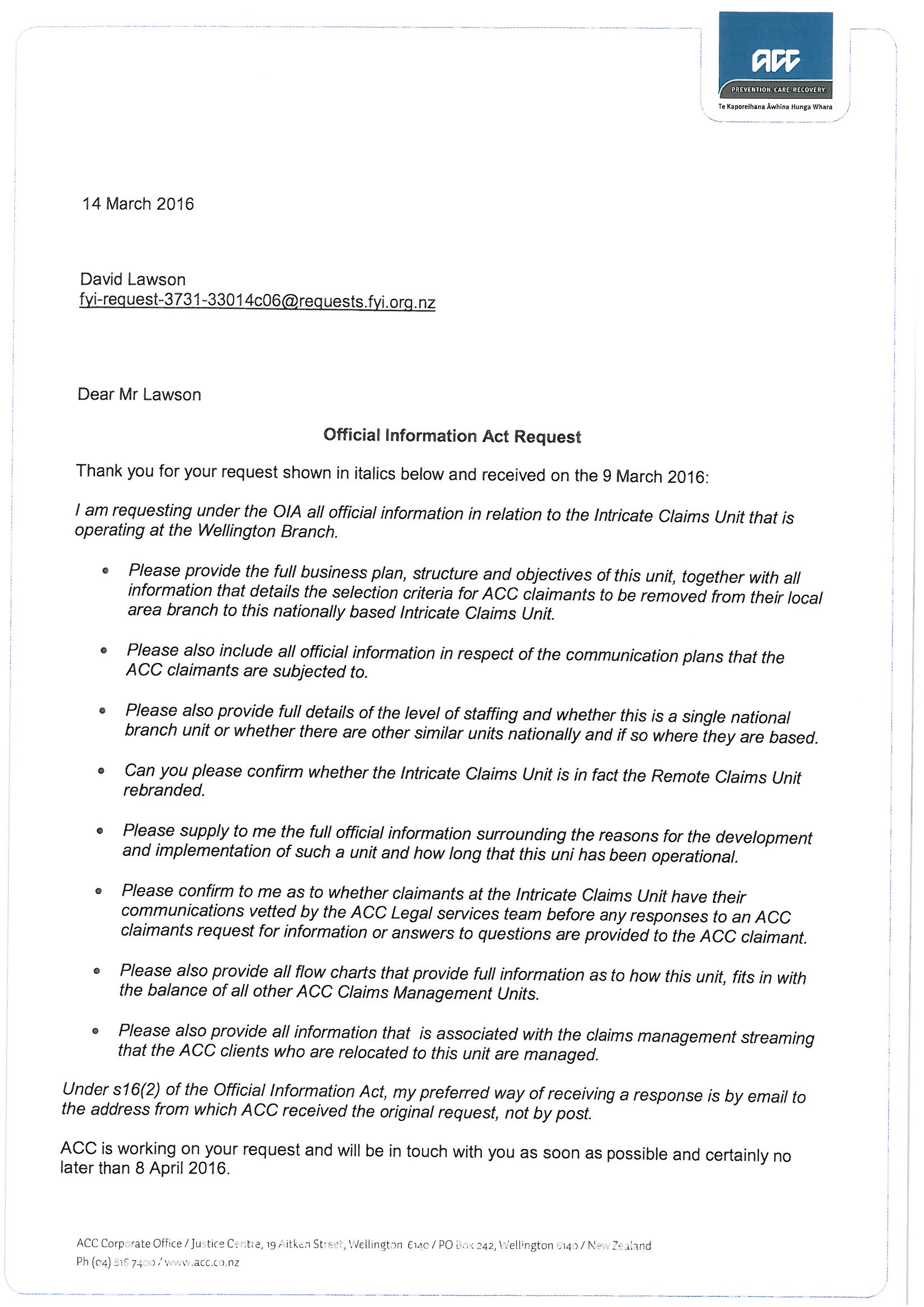 Intricate Claims Unit Wellington Branch