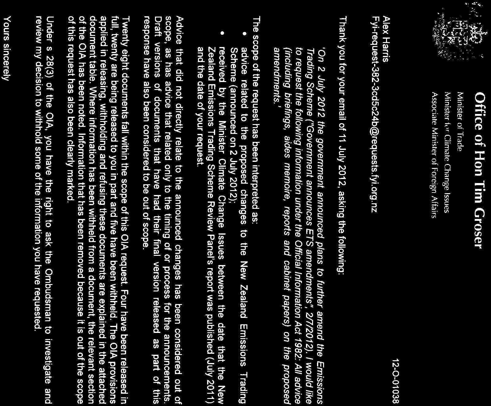Advice on ETS amendments