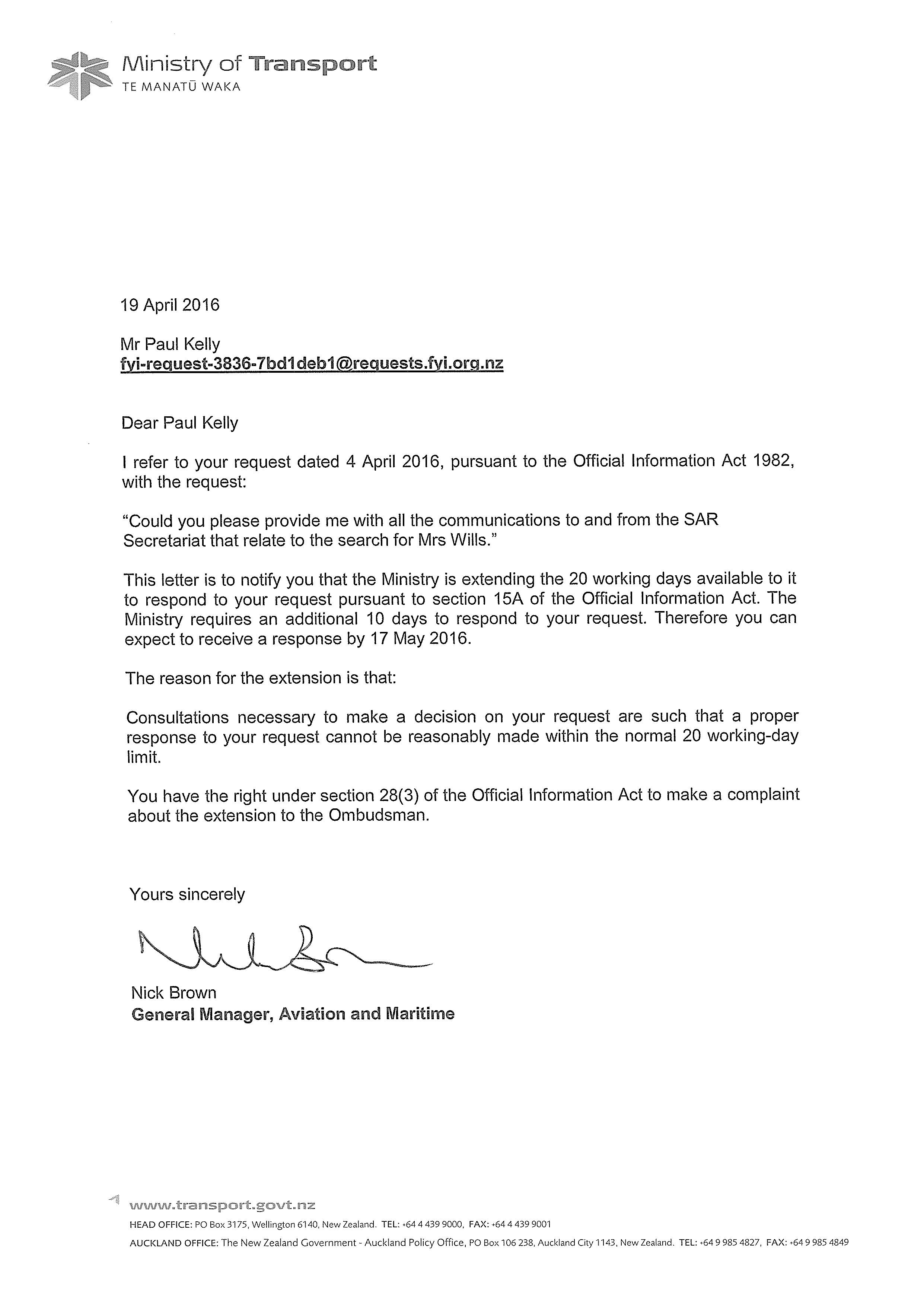 Reqeust for all communications between the SAR Secrateriate and people involved in the Wills search.