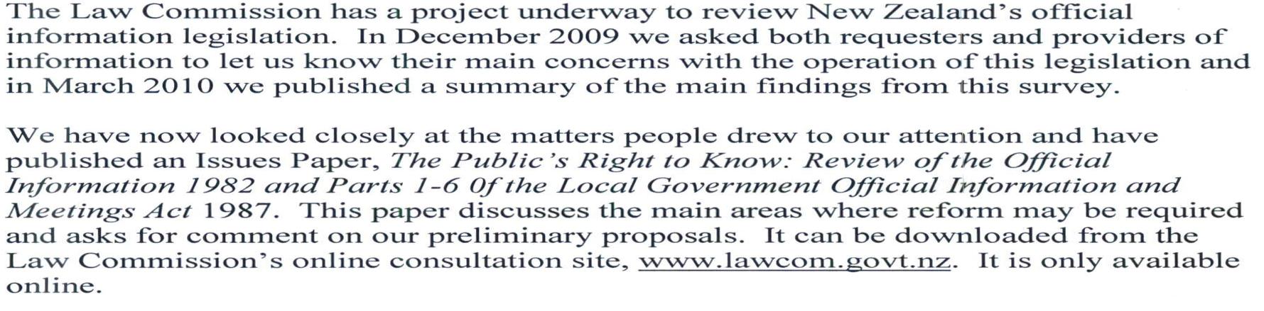 Document title: Review of Official Information Legislation