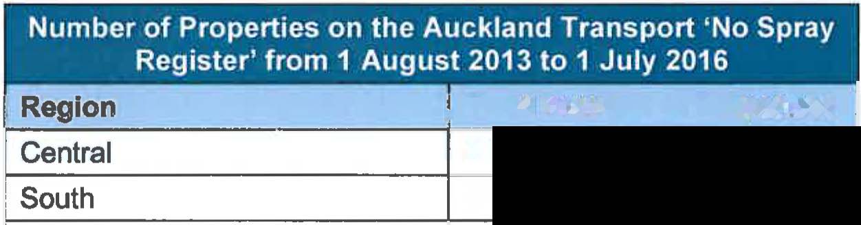 total number of properties recorded on the Auckland Transport 'No Spray Register' from 1 August