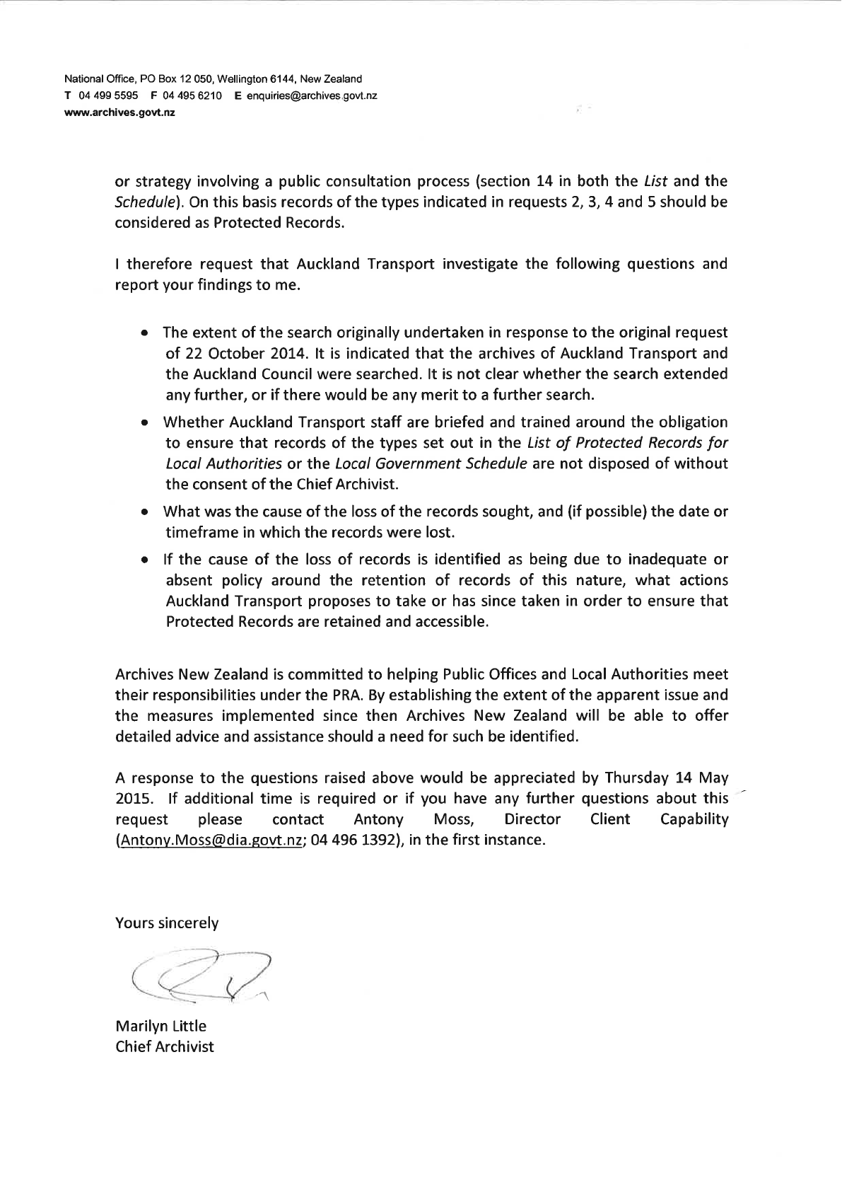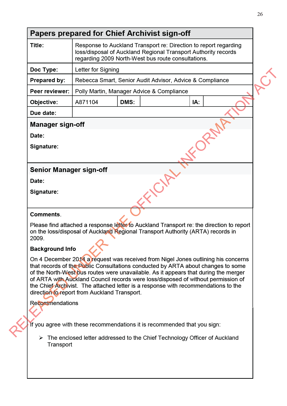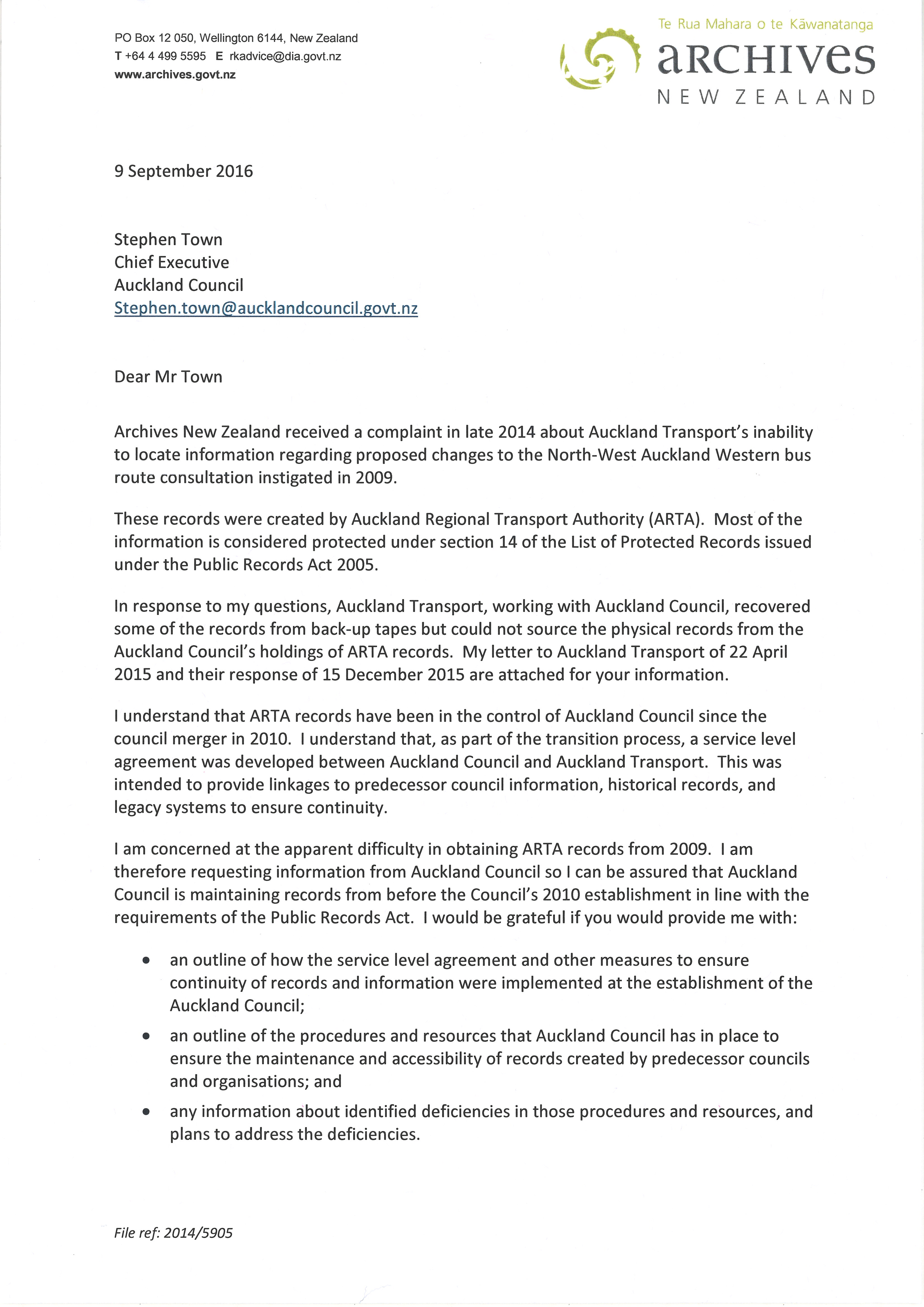 this time was insufficient, and that ARTA records are now managed by Auckland Council.