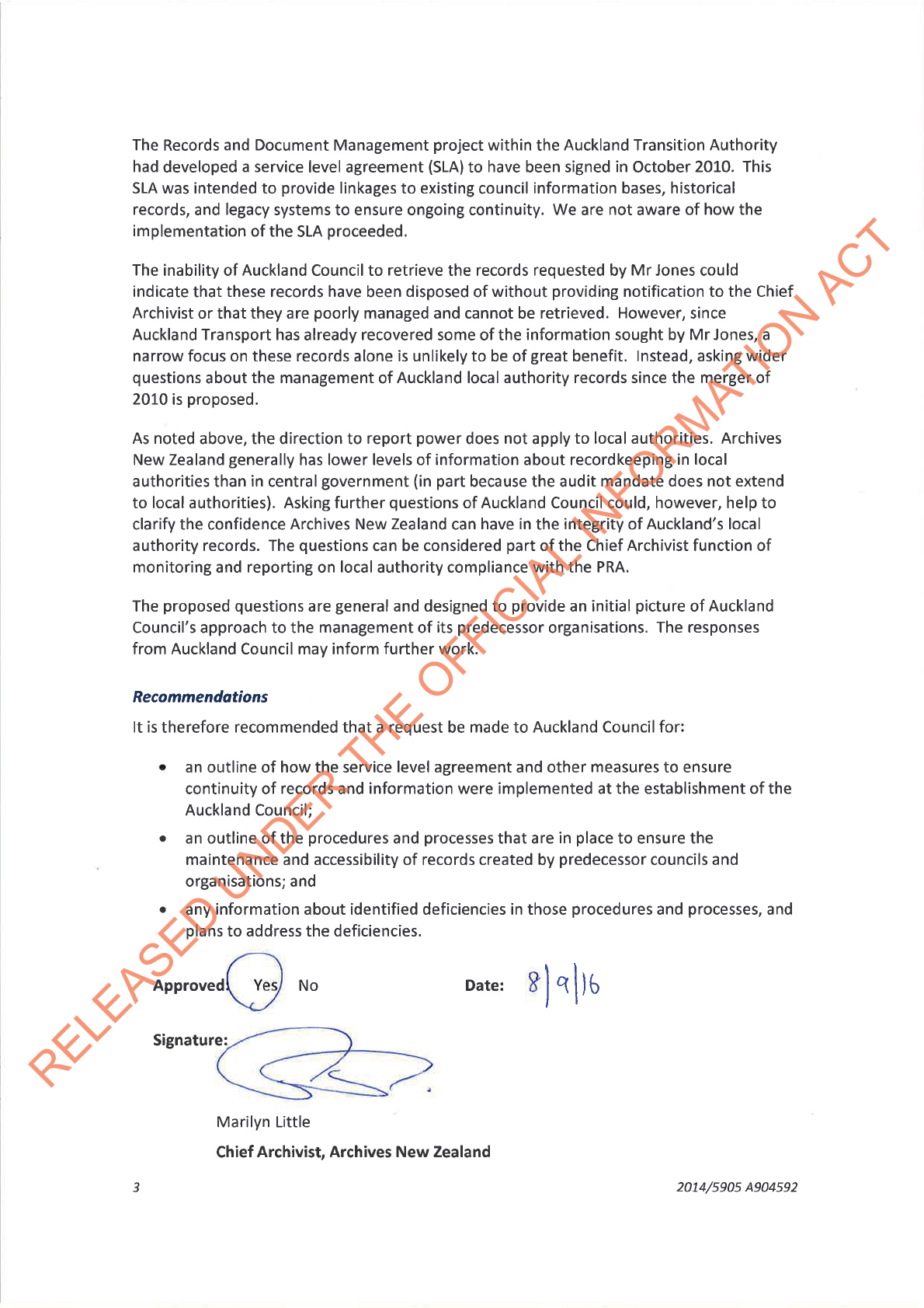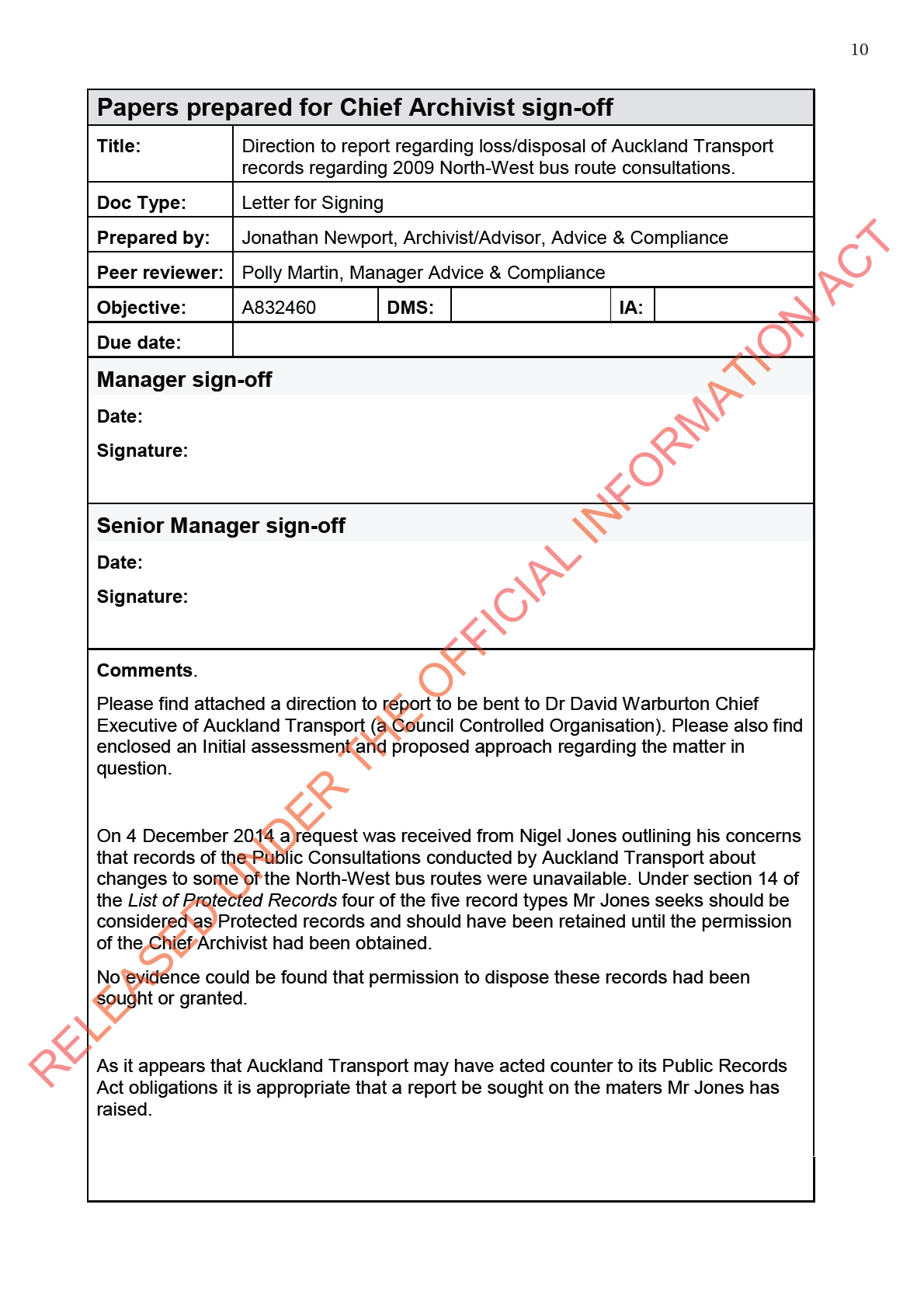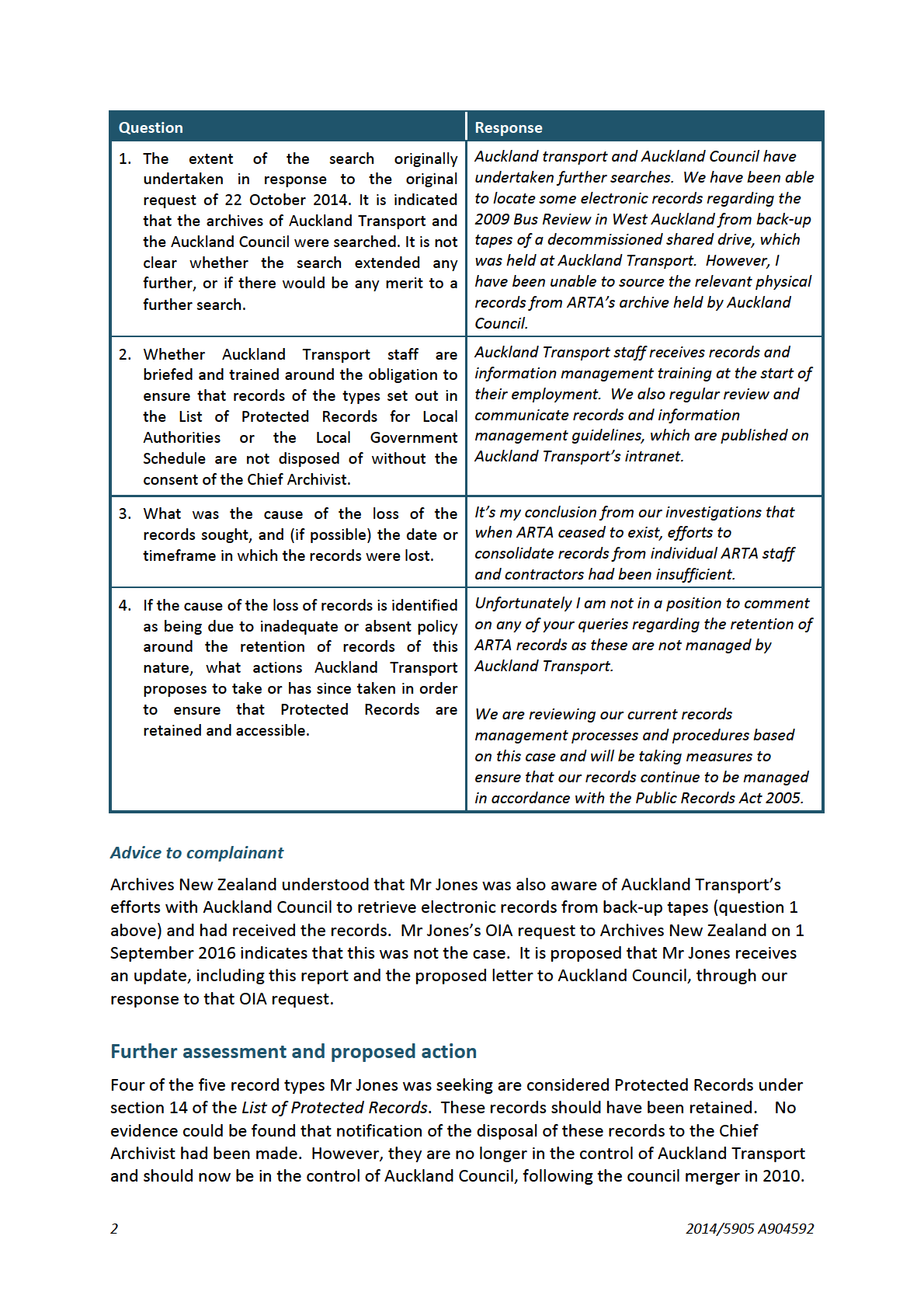 this time was insufficient, and that ARTA records are now managed by Auckland Council.